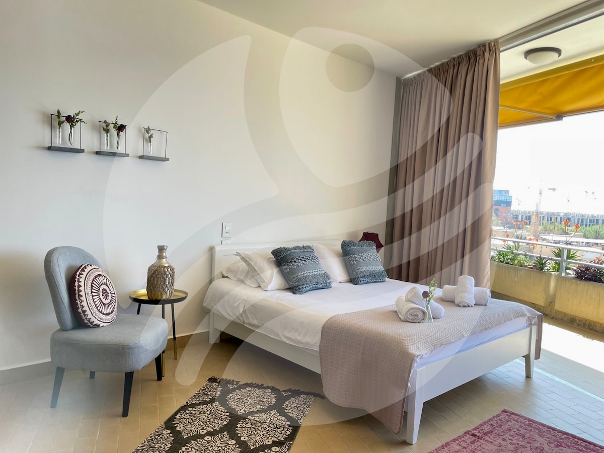 Ce logement unique a un style qui lui est propre. La chambre principale dispose d'un lit Queen Size et d'une fenêtre donnant sur la mer Méditerranée. Un grand placard miroir, une commode, un support de nuit, une salle de bain principale et une douche. La cuisine dispose d'un réfrigérateur, d'un four à micro-ondes, d'une cuisinière, d'un broyeur , d'un lave-linge/sèche-linge et d'un comptoir de bar. Le salon dispose d'un coffre-fort et d'un espace de rangement supplémentaire. Grande télévision. Internet gratuit. Salle de bain et douche invités. Balcon. Garage souterrain pour voiture. Accès à toutes les commodités du complexe hôtelier Piscines, court de tennis, restaurants