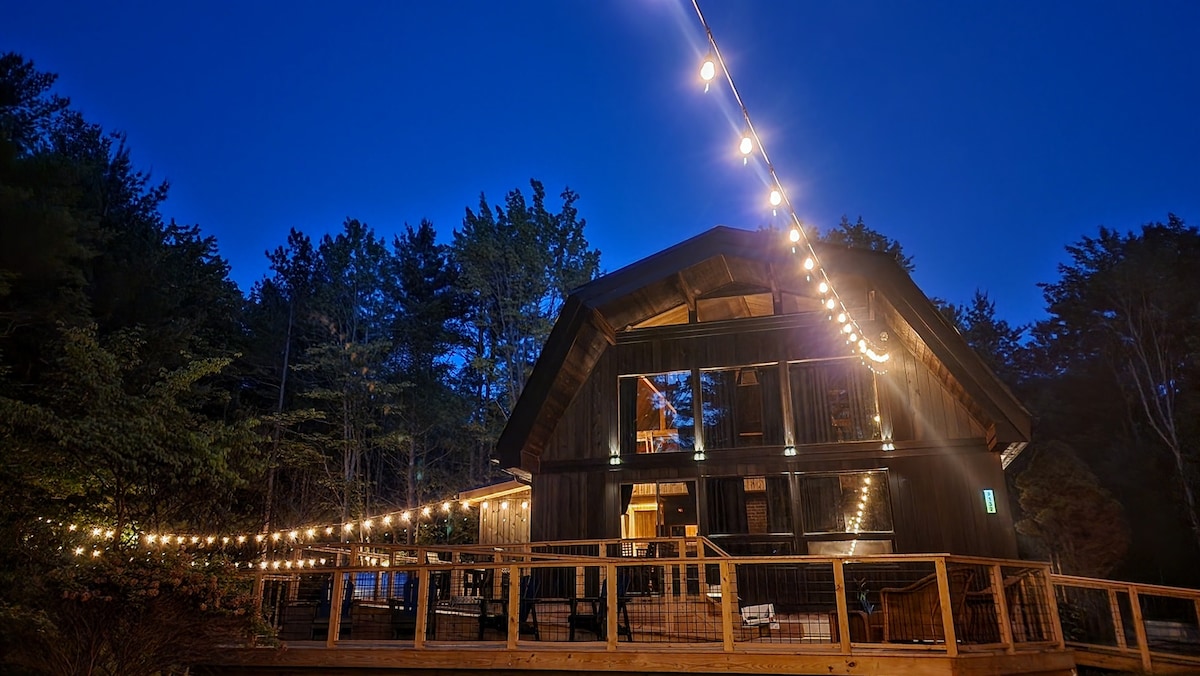 Ce chalet de ferme rénové par des professionnels en 2023 a tout pour rendre votre séjour luxueux et confortable. Située au point culminant du comté de Yates, sur Italy Hill, et au cœur des Finger Lakes de New York, cette cabane est nichée au milieu de 22 acres privés de forêt sereine, en bordure des terres de l'État et du sentier de randonnée des Finger Lakes. Profitez de votre étang privé de 1 acre alimenté par une source, rempli de petite bouche, de carpe, de perche et de crapet arlequin. Profitez du jacuzzi extérieur pour 7 personnes et du brasero pour terminer votre journée.