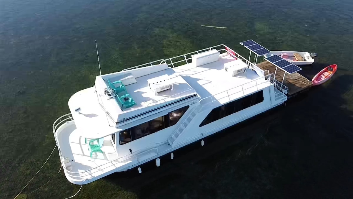 Évadez-vous au Grand Tiki, une retraite privée flottante à Key West, où la vue sur l'océan vous entoure de tous les côtés. Réveillez-vous sous une douce lumière sur l'eau, détendez-vous dans un lit King Size avec portes-fenêtres panoramiques et endormez-vous au son du doux rythme de la mer. Profitez du stand-up paddle, de la plongée avec tuba et des nuits étoilées au-dessus d'une eau scintillante. Comprend la climatisation, une douche chaude et des équipements modernes. Accessible uniquement par bateau – entièrement privé, absolument inoubliable.