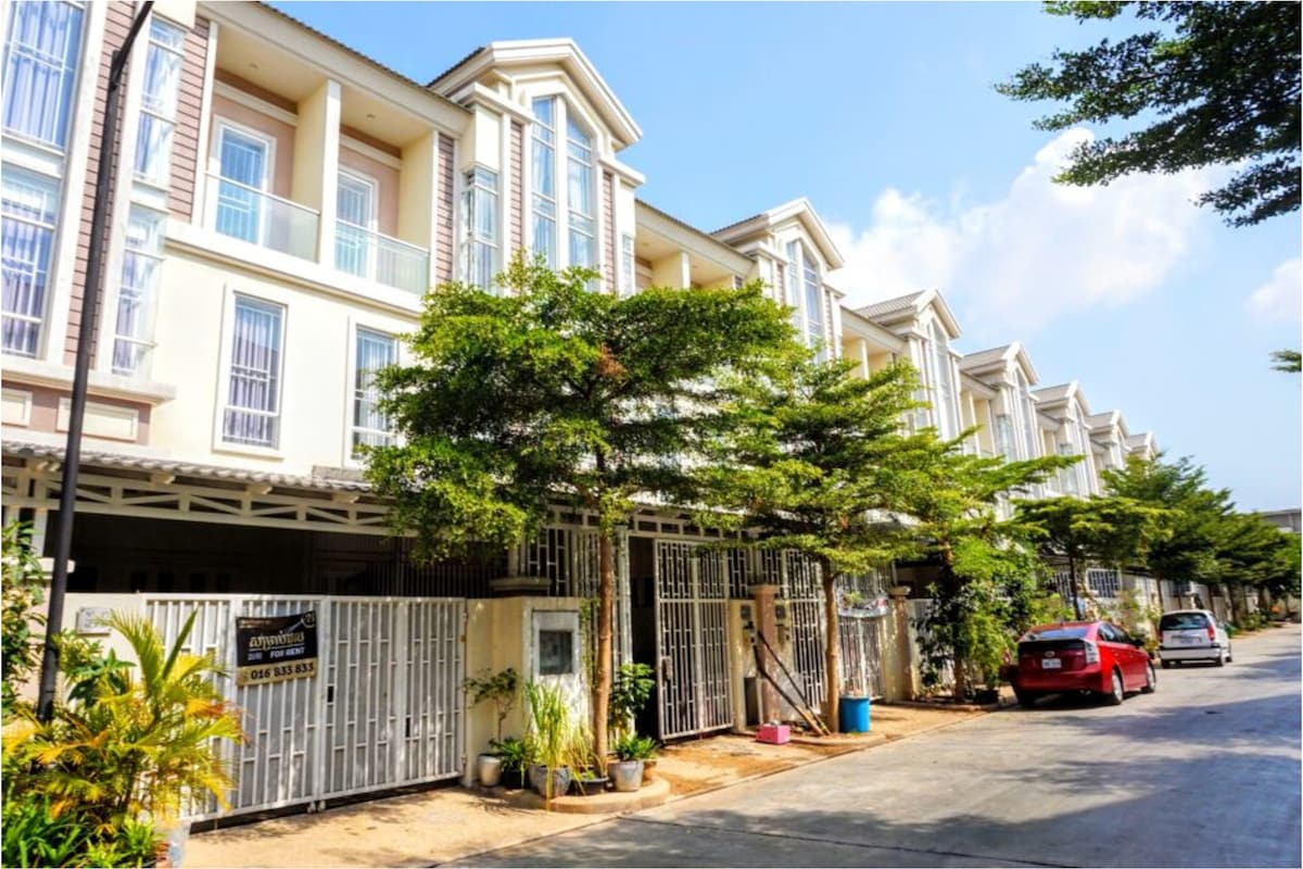 NOUVEAU (construit en 2021) SPACIEUX (3 étages, 3 pièces). PRATIQUE (7 mns to Aeon2, Makro supper market, 30 mns to PP Airport, Shared Swimming pool(charge) Ambiance CALME et PAISIBLE à la périphérie (quartier résidentiel exclusif, jardin, réveil avec des oiseaux qui chantent aux fenêtres, ferme de lotus et rizières à proximité)