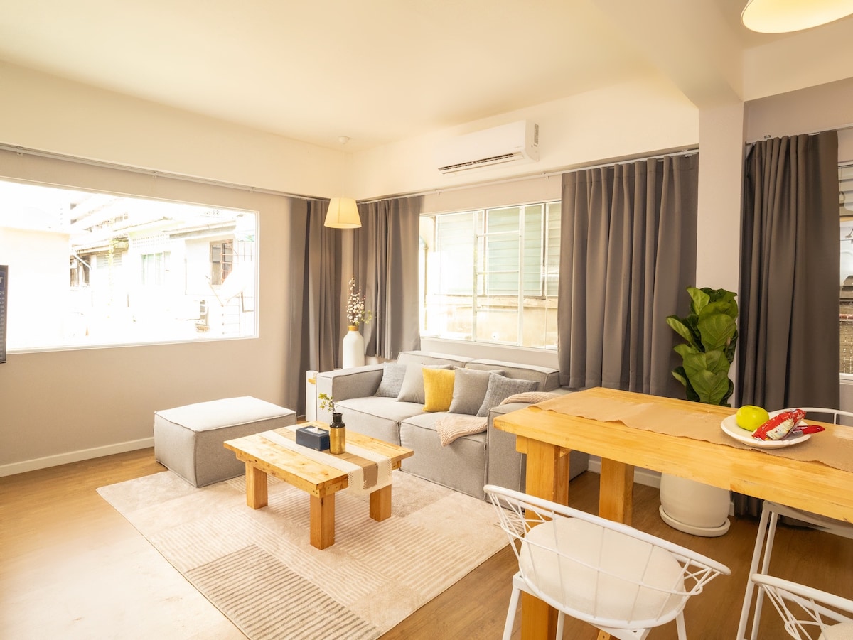 Séjournez dans un appartement privé au 3e étage dans le quartier animé de Sathorn, à seulement 4–6 minutes à pied du BTS. Dispose de 2 chambres (1 lit king size, 1 lit simple) pouvant accueillir 4 personnes, le 4e invité dormant sur le canapé, d'un salon spacieux, d'un coin repas et d'une kitchenette avec des outils de cuisine de base. À seulement 1 minute du marché frais, du supermarché et du 7-Eleven, avec de la nourriture locale à proximité. Comprend une grande salle de bain, une douche chaude, des articles de toilette et une serrure numérique sécurisée. Paisible, central et parfait pour des séjours courts ou longs à Bangkok.