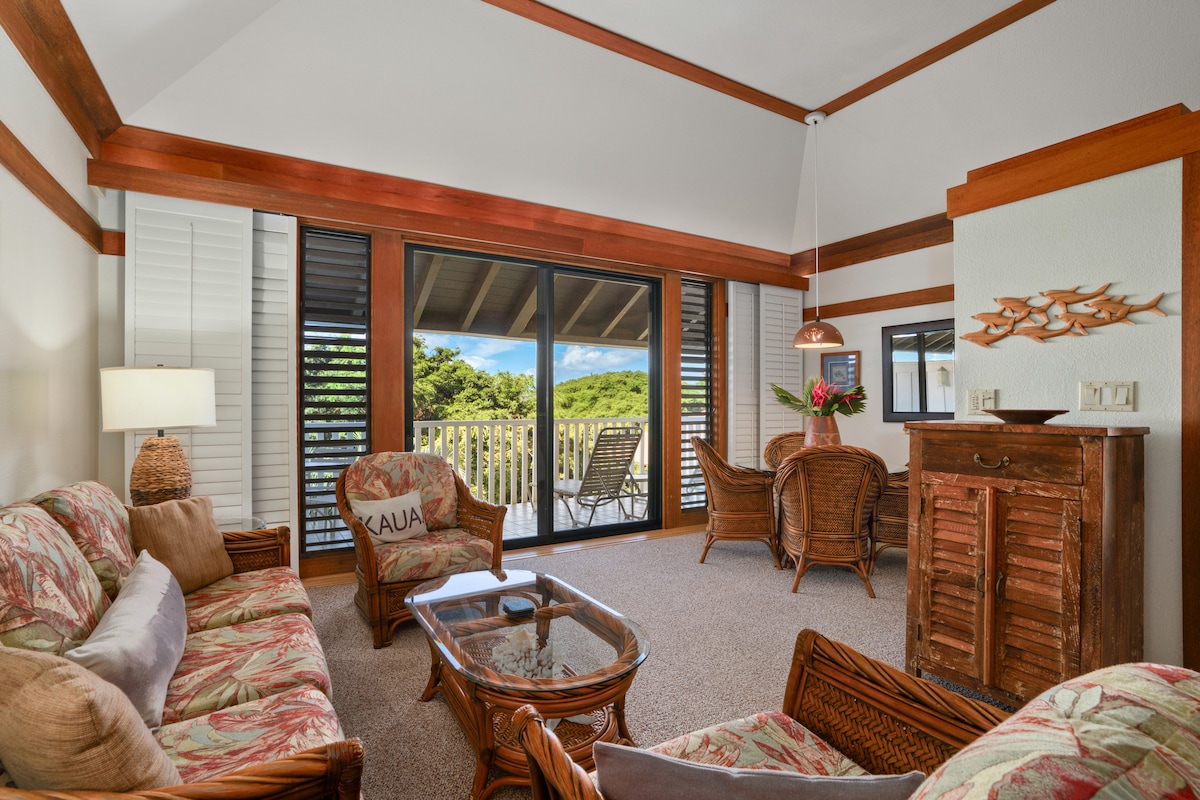 Enjoy this updated with furniture and decor coastal modern condo that is close to everything you and your family need for your vacation! Walk about 5 minutes to the amazing Kiahuna beach or the athletic club with an amazing pool and amenities! Sit on the private lanai and enjoy your morning coffee in the serene Hawaii weather overlooking the grass! We hope you come & enjoy our little slice of heaven on earth on the beautiful island of Kauai! ALL FEES ARE INCLUDED HERE IN AIRBNB! 🌺