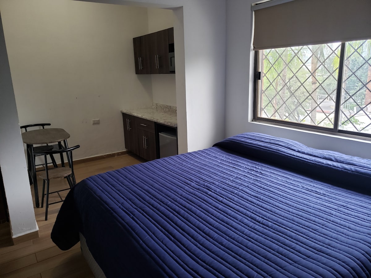 Appartement de type Studio confortable dans le sud de Monterrey Ambiance privée avec entrée indépendante et garage privé. Un espace confortable, propre et ouvert avec Internet, cuisine, espace de travail, salle de bains complète, climatisation, etc. Excellent emplacement à proximité de : Tec, Fundidora, Cintermex, stade BBVA, Novo Sur, Plaza California, Centro, San Pedro, restaurants, supermarchés, cinémas, pharmacies, bureaux de change 1 pâté de maisons OXXO, BBVA, Banorte 2 pâtés de maisons de Starbucks 3 pâtés de maisons de L. C. Pizza
