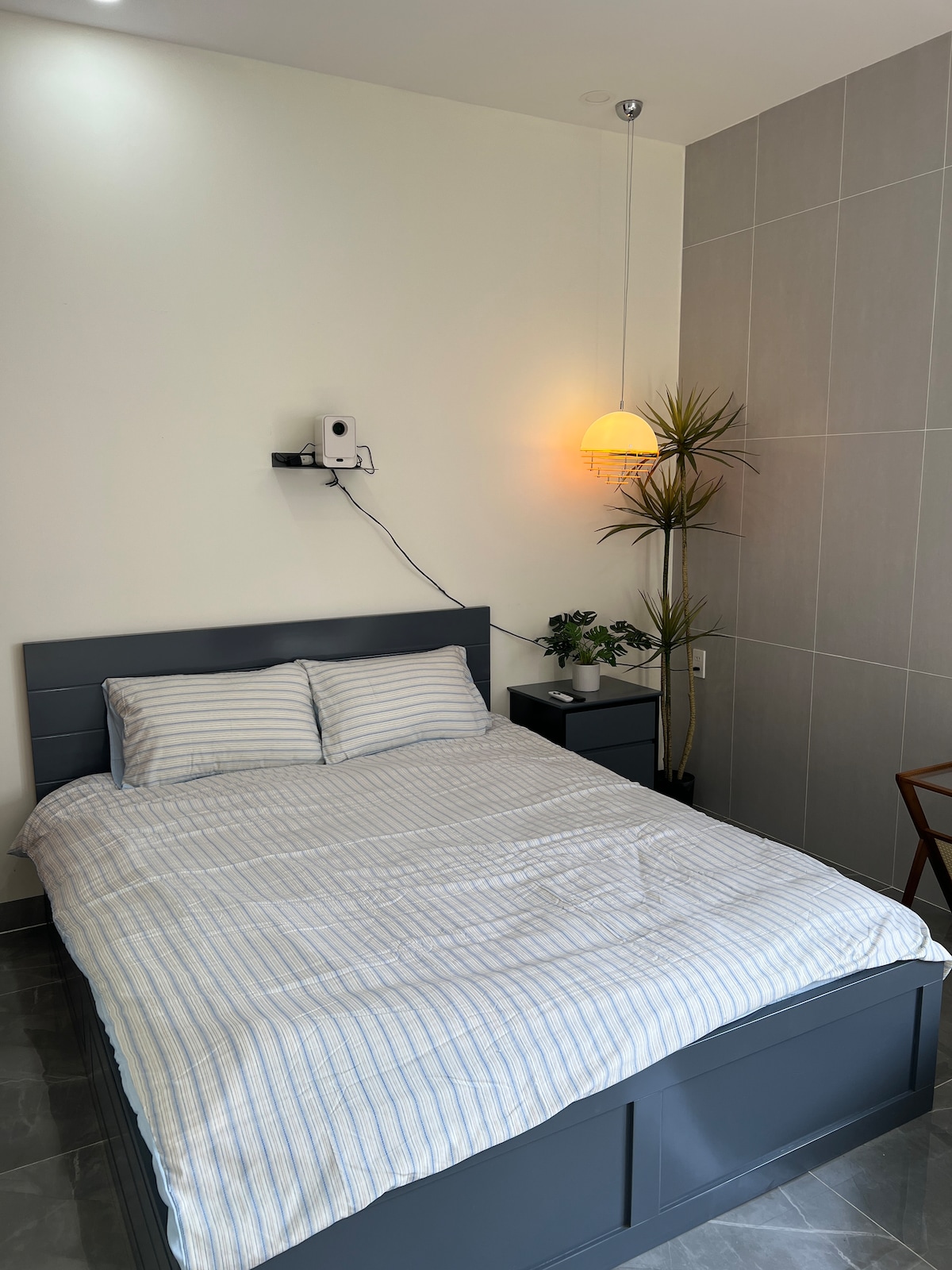 Ouvert – délicat – espace d'escapade privé 🌿 La maison d'accueil dispose d'une grande fenêtre en verre donnant sur un jardin vert frais, recevant pleinement la lumière naturelle. Chambre spacieuse, lit king size moelleux, équipée d'un mobilier neuf et luxueux, donnant une sensation de détente comme dans un complexe hôtelier. Le balcon privé est l'endroit idéal pour prendre votre café du matin, profiter du calme et de la tranquillité à l'écart de l'agitation. L'emplacement est juste à côté de Hau Nghia, Duc Hoa, et My Quynh Zoo, Cu Chi Tunnels