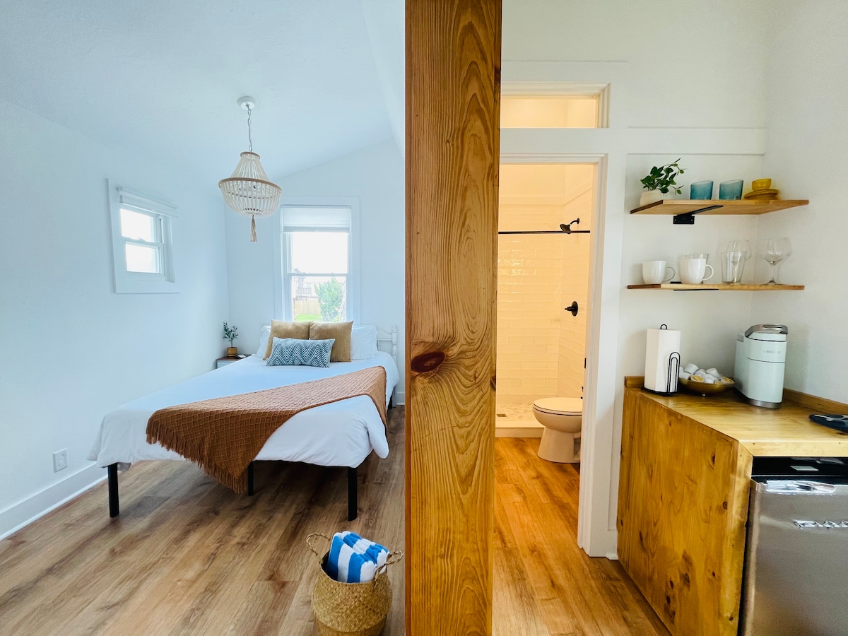 Vous adorerez cette escapade unique et romantique ! À quelques pas de l'accès à la plage la plus proche et à proximité de nombreux restaurants, c'est l'escapade idéale pour les couples. Notre studio dispose d'un lit Queen Size confortable, d'une télévision connectée, d'une cafetière Keurig, d'un mini-réfrigérateur et d'une luxueuse douche carrelée personnalisée.