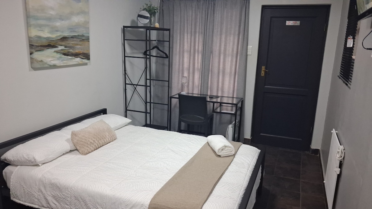 Profitez d'une expérience élégante dans ce domaine sûr, paisible et sécurisé. Idéalement situé à proximité d'un certain nombre de centres commerciaux où vous trouverez tout ce dont vous avez besoin ainsi qu'un certain nombre de beaux restaurants. Le logement est attaché à la maison et dispose d'un lit double, d'une salle d'eau privative avec douche et de votre propre patio avec une vue imprenable. Venez profiter de notre bel espace et faire une promenade le long du Silver Stream qui donne son nom à notre domaine. - Pas de délestage car nous avons un système solaire en place !