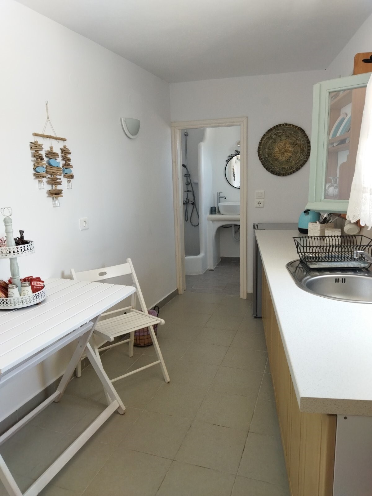 Dans le port principal de Kimolos en poisson,peu mètres de la plage est notre maison. Un studio nouvellement construit de 31m2 lumineux et confortable avec une terrasse. La cuisine est entièrement équipée avec cuisine et four, ustensiles et ustensiles dont vous aurez besoin. Réfrigérateur, grille-pain, cafetière,bouilloire. En trois minutes à pied, vous trouverez du café, pâtisserie, taverne-restaurant, distributeur automatique debillets et en dix minutes à pied vous allez pleuvoir dans le centre du village .
