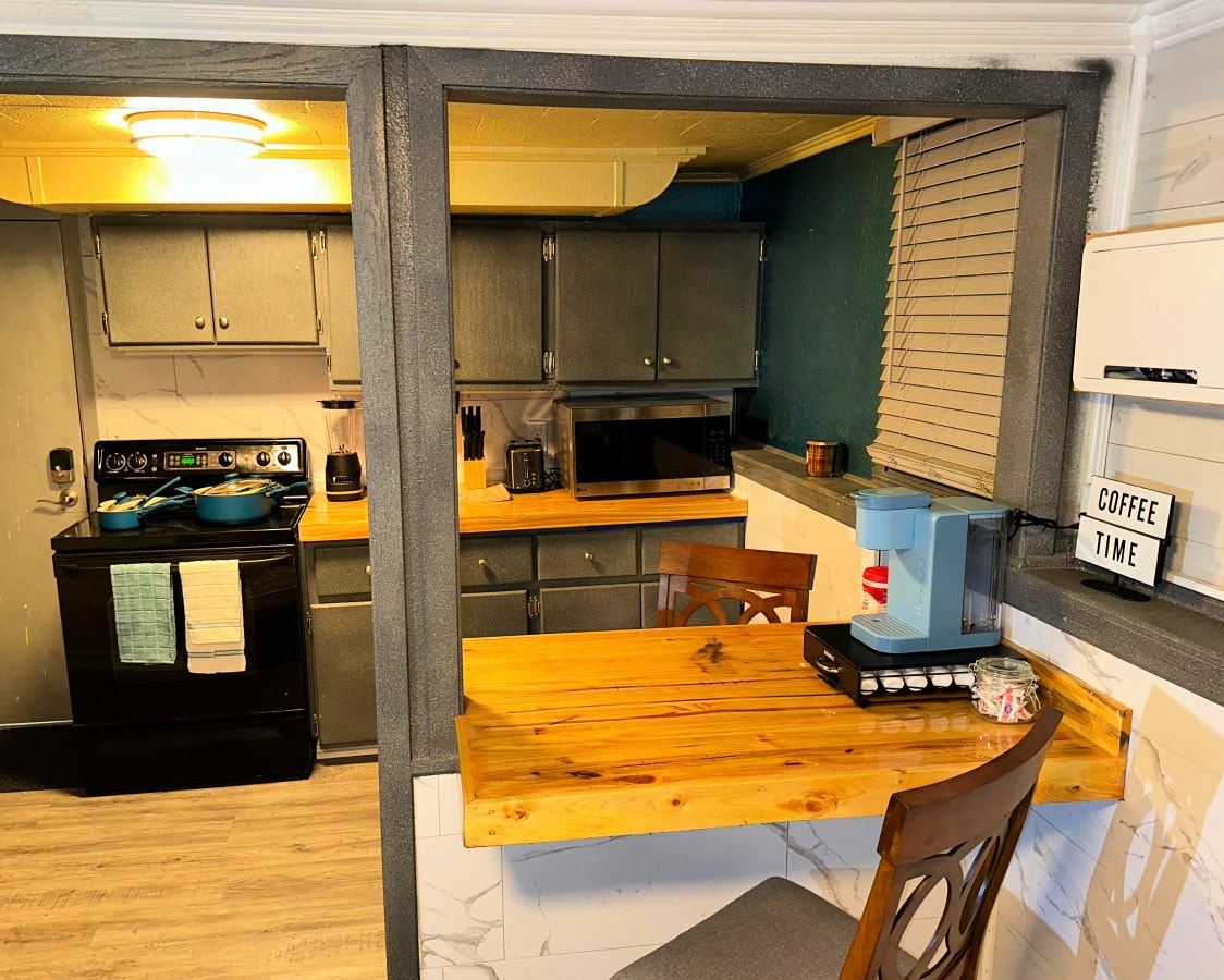 Bienvenue dans notre maison d'hôtes unique en son genre. C'est une ancienne école de campagne et une salle de la Légion américaine transformée en une retraite moderne. Ce logement unique allie charme historique et confort moderne avec une cuisine complète, des lits douillets et des équipements extérieurs. Avec ses hauts plafonds et ses détails originaux, il est parfait pour les couples, les familles ou les petits groupes. Que vous vous détendiez ou exploriez la région, ce séjour charmant et élégant offre une expérience mémorable avec une histoire riche.