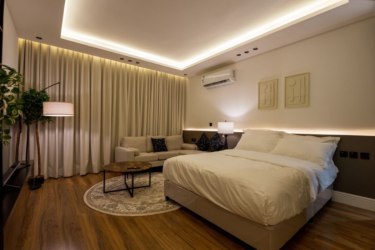 Enjoy a modern stay in Riyadh’s Olaya. This stylish apartment features a private balcony with outdoor seating, a cozy bedroom with smart separation, a comfortable living area, fully equipped kitchenette, in-unit washing machine, and workspace. Just an 8-minute walk to the metro, with Al Jazirah Hypermarket right across the street. The area is vibrant and full of restaurants and cafés—perfect for food lovers and business or leisure stays.