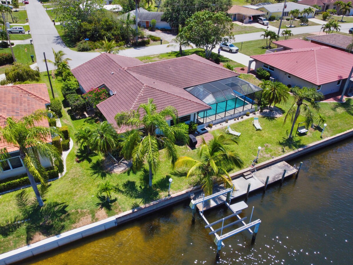 La maison moderne au bord de l'eau est au top des réservations en raison de 1 pâté de maisons de Fisherman 's Village, Harbor Trail et de la propreté. Plus de 200 évaluations 5 étoiles depuis 2018, ce qui est le plus élevé dans la région de PG. Superbe piscine d'eau salée chauffée dans le lanai avec vue sur l'eau et plein soleil. Un mobilier élégant avec de hauts plafonds, des appareils modernes et beaucoup d'espace avec deux salons et une salle de jeux. De nombreux équipements, y compris des kayaks, des vélos, des jeux vidéo, une table de billard, etc.