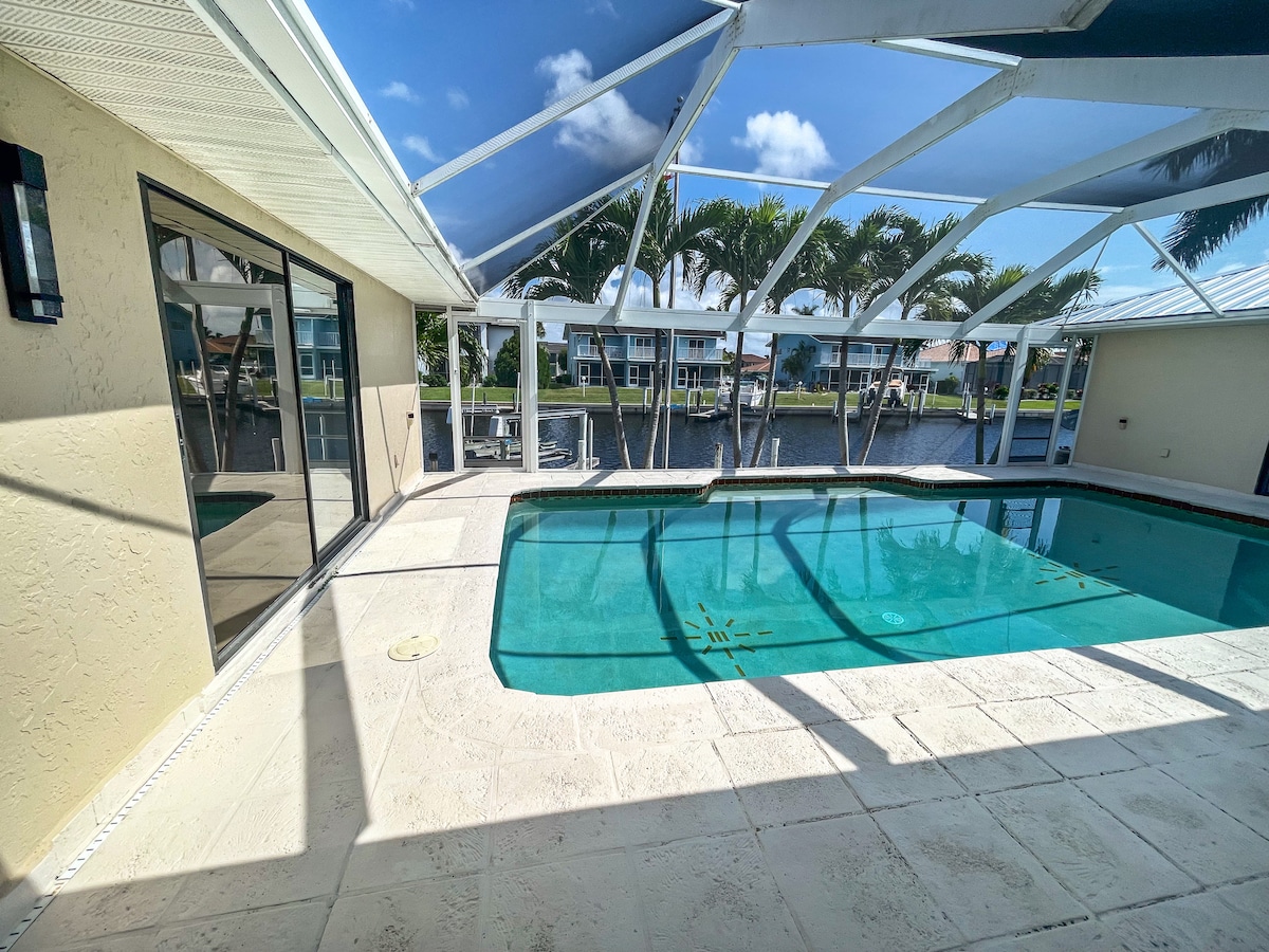 Maison individuelle 3/2 à Punta Gorda Isles. Détendez-vous dans votre véranda avec une piscine chauffée qui surplombe le canal et un quai pour bateau que vous pouvez voir de chaque pièce de la maison. À proximité de Fisermans Village, de Harbor Walk et du parc Ponce De Leon. Punta Gorda est un paradis pour les plaisanciers et les pêcheurs ! Cuisine entièrement équipée, deux lits queen size et deux lits jumeaux. Garage 2 voitures, lave-linge et sèche-linge, kayaks et gilets de sauvetage, vélos, table de ping-pong, jeu de fléchettes, Internet, télévision en direct et Wi-Fi.