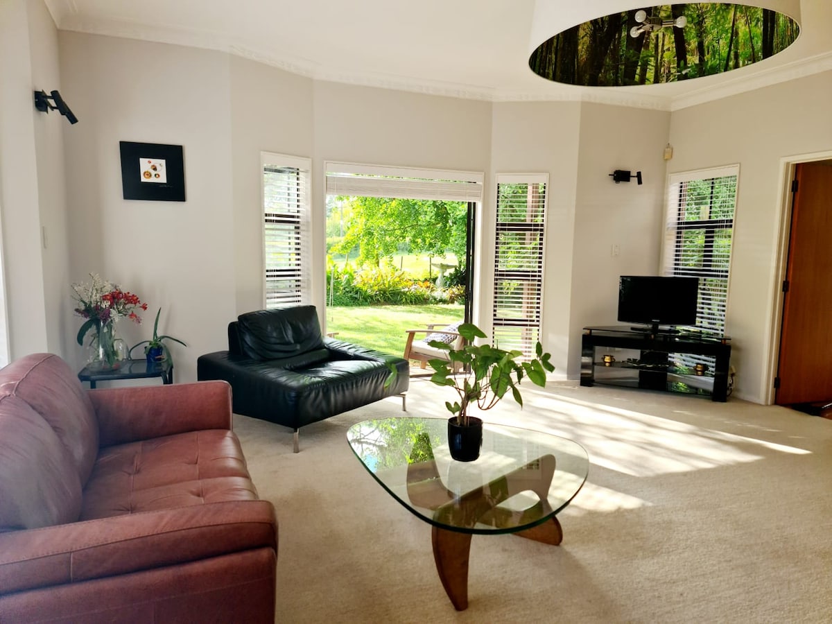 Détendez-vous dans cette retraite paisible et élégante avec une vue imprenable sur la campagne et une intimité totale. Situé à seulement 40 minutes de l'aéroport d'Auckland, à 50 minutes du quartier des affaires et à 10 minutes de Pukekohe, il est idéal pour échapper à la ville ou profiter d'un début ou d'une fin de séjour reposant en Nouvelle-Zélande. À proximité des plages de la côte ouest, des promenades dans la brousse, des restaurants locaux et des parcs familiaux populaires. Profitez de la terrasse couverte, du salon ouvert et de l'environnement champêtre apaisant. Veuillez respecter les voisins : pas de fêtes ni de musique forte.