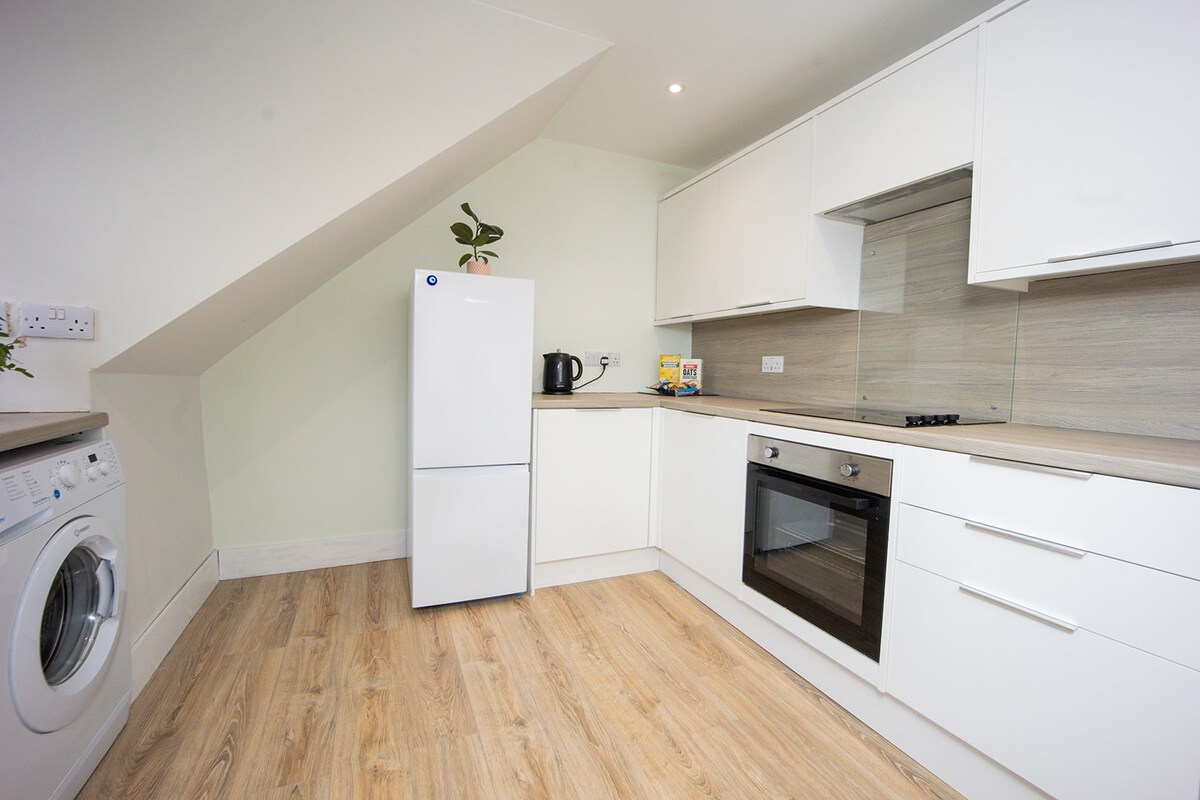 Appartement au rez-de-chaussée entièrement rénové pour convenir à tous les visiteurs, que ce soit pour les affaires ou les loisirs, avec un salon spacieux, une cuisine complète et une chambre confortable. Sky TV, applications de streaming, fibre haut débit ultra-rapide (151 Mbps), chauffage central au gaz et stationnement gratuit dans la rue. Situé à quelques minutes à pied du centre-ville dans le quartier branché du West End, à proximité des bars, restaurants et boutiques. Les zones d'affaires sont facilement accessibles, la gare est à 5 minutes en taxi et l'aéroport à 20 minutes.