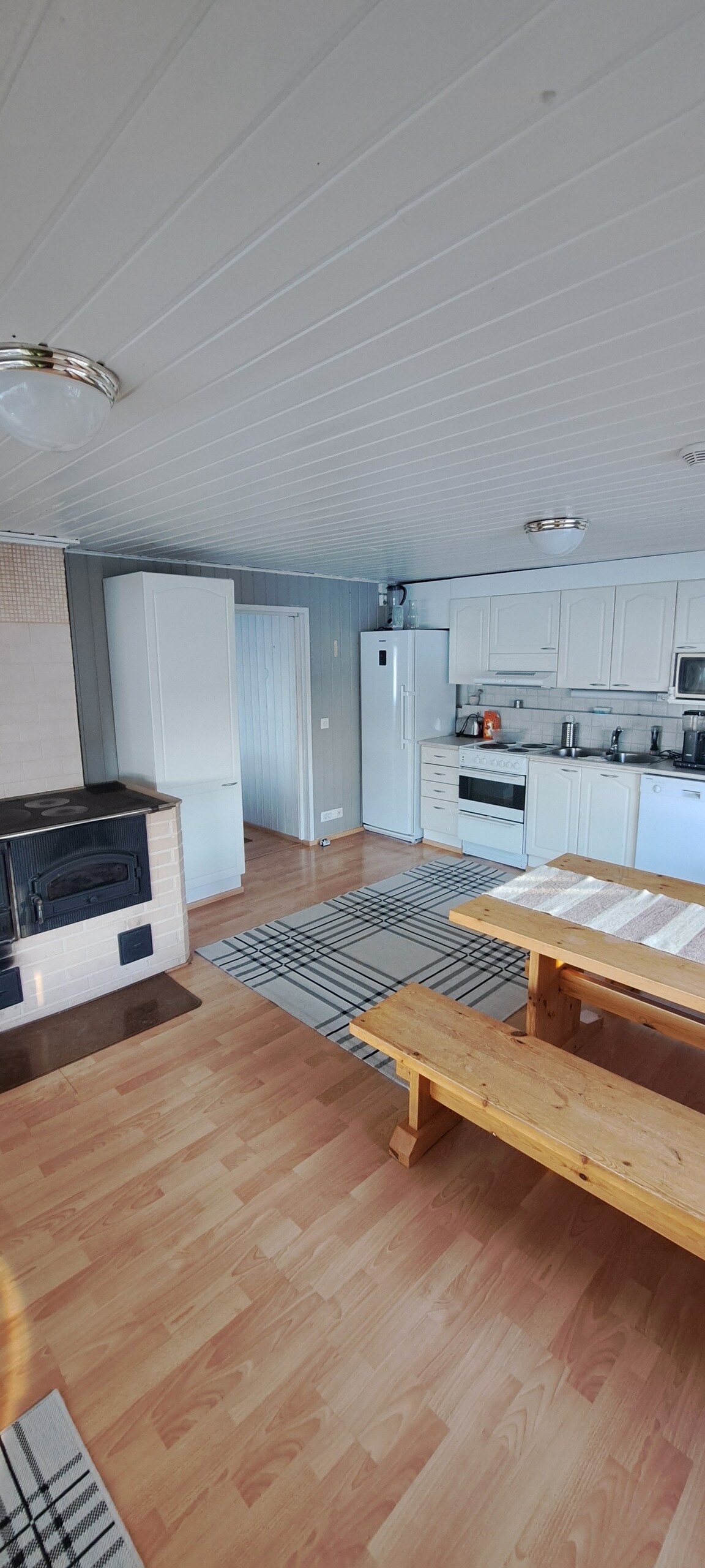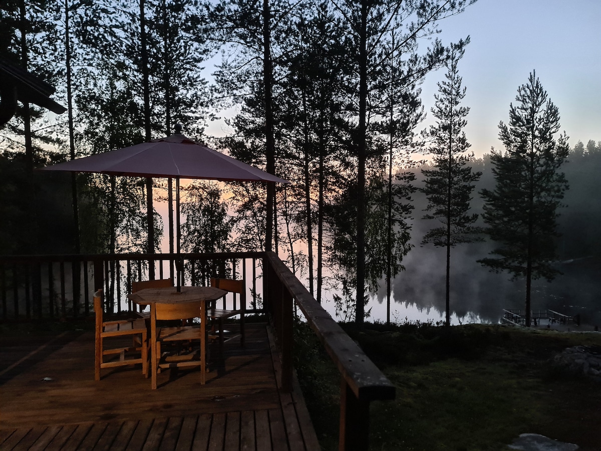 Cottage électrifié avec une belle vue sur le lac. Grande terrasse, cuisine d'été, sauna extérieur, foyer (selon accord), plusieurs emplacements pour feu de camp, cuisinière à gaz, barbecue à gaz, réfrigérateur et armoire américaine avec petit compartiment congélateur. Espace pour un groupe de 6 personnes. Bateau à rames à moteur électrique à disposition. Eau courante du lac. (Dans le chalet, vous trouverez de l'eau potable dans un bidon.) Sauna avec douches électriques. Lac poissonneux et chasse au petit gibier (selon accord) possible. Pour les clients de longue durée, un service de blanchisserie est organisé.