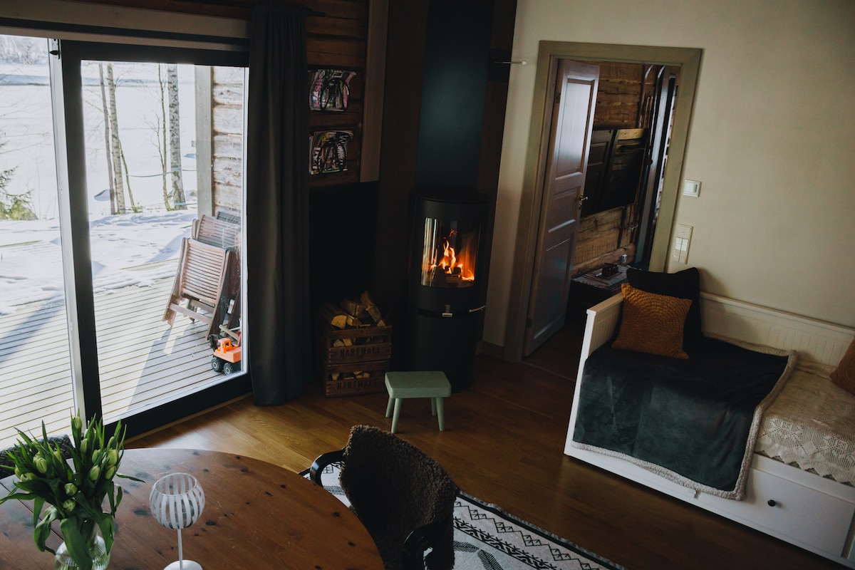 Chalet d'hiver avec tout le confort au bord du lac. Lits doubles à l'étage supérieur du chalet et dans la chambre du rez-de-chaussée, et canapé convertible en lit double dans le salon. La dépendance dispose d'un sauna en bois et d'une chambre avec un lit double. (Baignoire en supplément). Un barbecue à gaz et un barbecue chauffé au bois se trouvent dans la cour et vous pouvez vous asseoir sous l'auvent. Facile d'accès par les transports en commun. Piste de patinage à Vesankajärvi en hiver et piste de luge. Piste de frisbee à Vesalan monttu 2 km, Petäjävesi 20 km. Laajavuori 9 km.