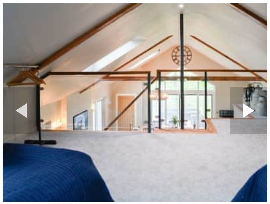 Superbe conversion de grange adaptée aux familles et aux chiens.