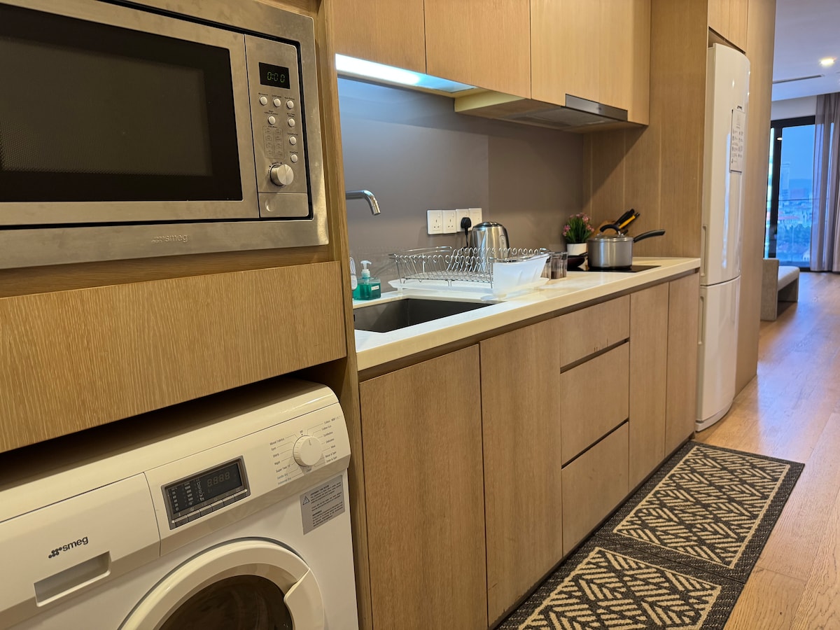 Ouvrez les rideaux de la chambre le matin pour révéler une vue imprenable sur la ville, une vue partagée par un bureau pratique. Des nuances apaisantes de taupe et de gris maintiennent une sensation sophistiquée. Les détails modernes de la salle de bain et de la cuisine en font un point de départ idéal pour explorer. Mon appartement de service d'une chambre d'environ 900 pieds carrés est entièrement meublé et entièrement climatisé avec des espaces de vie, salle à manger, cuisine et chambre intégrés. Séjour : canapé 3 places confortable, chaise longue et télévision à écran plat pour offrir aux voyageurs un endroit confortable où passer leur temps libre. Cuisine : vous avez envie de préparer votre propre repas ? Pas de soucis, cette cuisine moderne et bien équipée offre tout ce dont vous avez besoin pour préparer vos repas, que ce soit pour vous ou pour votre bien-aimé. Ne soyez pas surpris qu'il y ait même un lave-linge avec sèche-linge intégré. Salle à manger : une table à manger simple et confortable adjacente à la cuisine pour un service pratique, n'hésitez pas à préparer votre propre repas et à profiter de manger ici ainsi que de partager un rire et de renforcer les relations. Chambre : l'endroit où vous vous cachez à la fin de la journée pour vous reposer, vous détendre avant de vous endormir dans un sommeil réparateur. Cette chambre spacieuse et confortable est équipée d'un lit King Size, d'une armoire et d'un bureau, d'une télévision à écran plat et d'un accès privé à une superbe salle de bain qui vous offrira un environnement de repos inoubliable. Enfin et surtout, une connexion Wi-Fi gratuite est mise à la disposition des voyageurs dans mon appartement afin qu'ils puissent rester en contact avec leurs amis et leur famille ou s'occuper de leurs affaires à tout moment. Les installations communes de Sky Gym, situées au 39e étage, piscine à débordement, salles de jeux et aire de jeux pour enfants au 5e étage, ouvertes tous les jours de 7h à 22h. N'hésitez pas à demander autant que vous le souhaitez. L'appartement se trouve dans l'hôtel Fraser Residence, dans le centre de Kuala Lumpur. Il se trouve à 800 mètres des tours jumelles Petronas et du centre commercial Suria KLCC. Quant à la commodité, l'épicerie est à seulement une minute, les transports en commun sont accessibles en quelques minutes à pied comme la station de monorail Bukit Nanas (5 min) et la station de LRT Dang Wangi (7 min), mais les clients peuvent également se rendre à pied au centre touristique de Malaisie (7 min), aux tours jumelles Petronas (18 min), au Hard Rock Café (8 min), à la tour de Kuala Lumpur (29 min) et à de nombreuses autres attractions. Il y a également un service de bus public (GOKL City Bus) qui offre aux passagers un service gratuit pour les navetteurs dans le quartier central des affaires de Kuala Lumpur. Vous êtes invités à vous rendre dans certains des endroits populaires comme Pavillion, Bukit Bintang, Petronas Twin Tower, Pasar Seni et bien d'autres... Nous fournissons un nettoyage gratuit (une fois par semaine) à ceux qui séjournent 7 nuits et plus, ce qui comprend le changement des draps, des serviettes et le nettoyage de base. (Sur demande - Préavis d'un jour) L'appartement se trouve dans le 188 Suites dans le centre de Kuala Lumpur. Il se trouve à 800 mètres des tours jumelles Petronas et du centre commercial Suria KLCC.