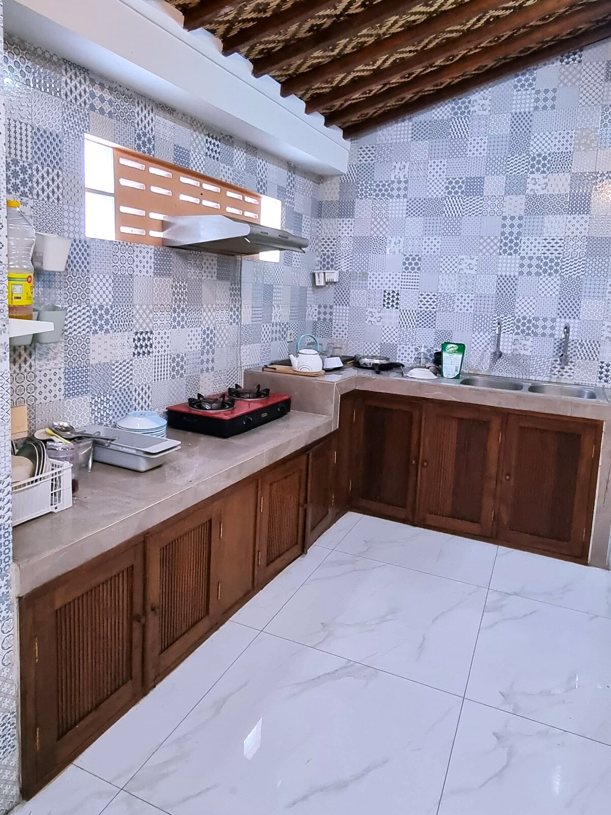 Une résidence confortable avec une ambiance traditionnelle d'une maison Joglo avec 3 chambres climatisées, 2 salles de bains, un salon, une cuisine entièrement équipée, un coin barbecue sur la terrasse avant et un garage pour voitures. L'emplacement est à seulement 1 km derrière le temple de Prambanan. Parfait pour une escapade en famille et entre amis.