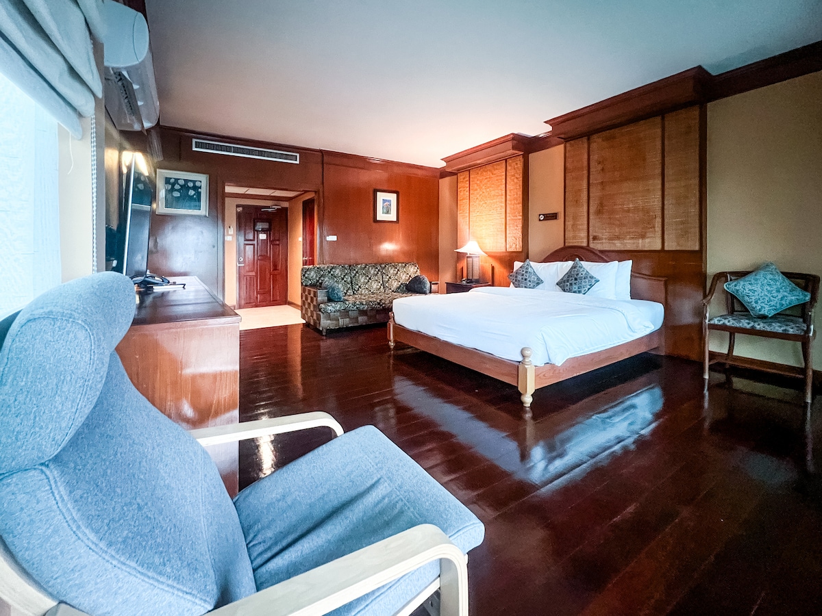 Bienvenue dans notre chambre Deluxe à Koh Chang, avec un balcon privé avec vue panoramique sur la baie et la cour. Cette retraite climatisée offre des lits doubles ou jumeaux confortables, un mobilier en bois fin et une télévision par câble. Détendez-vous dans la salle d'eau attenante avec baignoire et douche. Profitez d'équipements modernes et de paysages à couper le souffle pour une escapade parfaite.