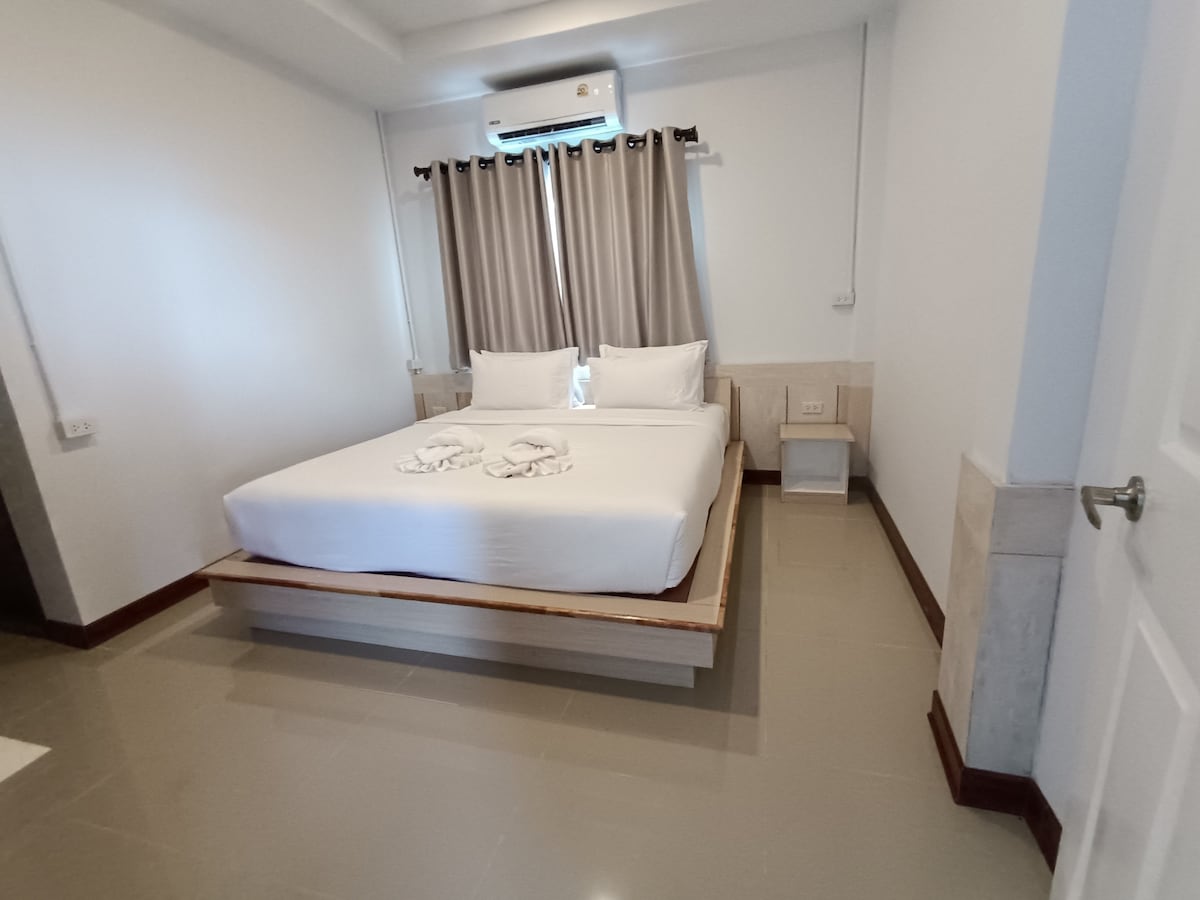Profitez d'un séjour confortable dans notre chambre lumineuse et spacieuse, à quelques pas de la magnifique plage de Klong Dao. Parfaite pour les couples, les amis ou les petites familles, cette chambre dispose d'un lit double et d'un lit simple, ce qui la rend idéale pour accueillir jusqu'à 3 personnes. Restez près de la plage, des restaurants et des commerces locaux tout en profitant d'une atmosphère simple et relaxante chez nous. Parfait pour les clients qui aiment le confort et la commodité dans un cadre insulaire convivial.