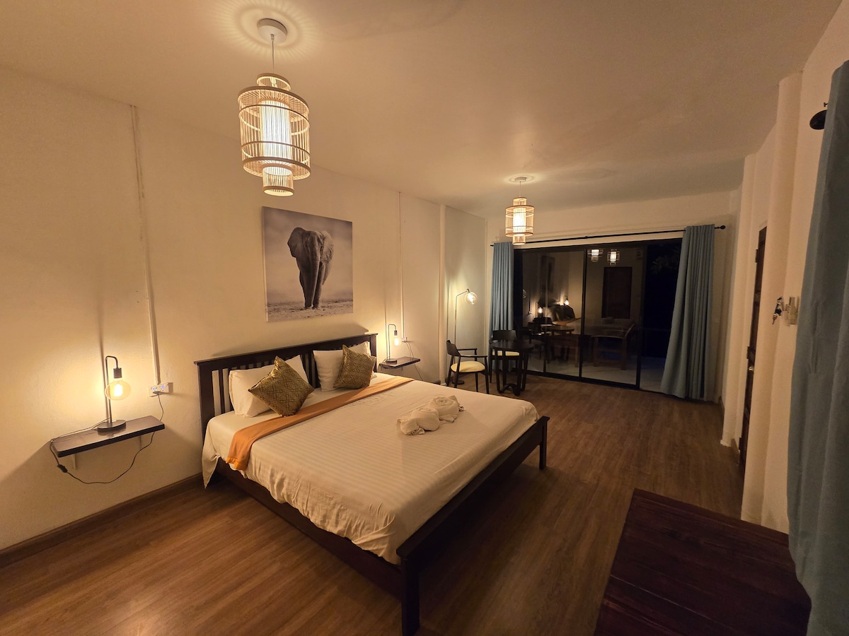 Nos tout nouveaux bungalows modernes sont situés à seulement 200 mètres de la plage de Koh Lanta. Chaque bungalow dispose de la climatisation, d'une connexion Wi-Fi rapide, d'une salle de bain privée, d'une literie confortable et d'une terrasse confortable pour se détendre. Le quartier est calme et paisible, mais à quelques pas des restaurants, des magasins, des locations de scooters et de la plage. Parfait pour les couples, les voyageurs en solo et tous ceux qui recherchent un séjour propre et confortable près de la mer.