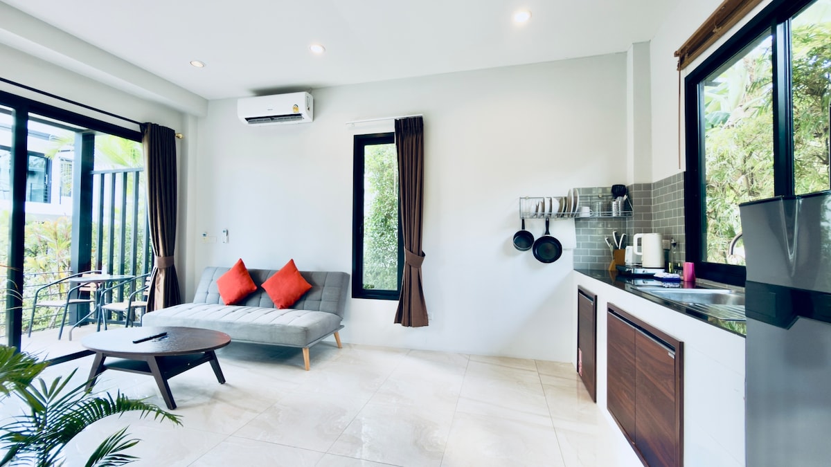 Détendez-vous dans notre appartement moderne d'une chambre magnifiquement conçu, un havre de paix au sein de notre complexe tranquille et spacieux. Situé dans une partie centrale mais calme de l'île, vous êtes à quelques minutes en voiture des plages pittoresques au coucher du soleil, des espaces de coworking, des restaurants haut de gamme, des centres de yoga et d'autres attractions. Cet appartement élégant offre une escapade confortable et contemporaine pour les couples, cuisine moderne, jardin extérieur, télévision connectée. Créez des souvenirs inoubliables dans ce cadre serein.
