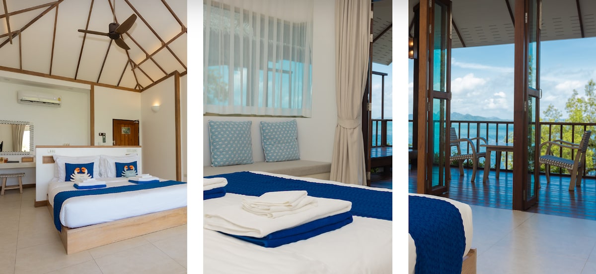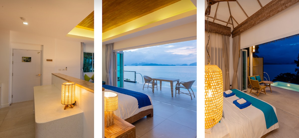 Villa Hilltop avec piscine privative et vue sur la mer d'Andaman Évadez-vous dans une villa privée au sommet d'une colline, entourée d'une végétation tropicale luxuriante et de paysages naturels sereins. Profitez d'une vue panoramique à couper le souffle sur la mer d'Andaman depuis votre propre piscine à débordement. Cette villa spacieuse est conçue pour le confort et l'intimité, et elle dispose d'un lit King Size, d'un élégant espace de vie et d'une terrasse extérieure propice à la détente. Parfait pour les couples à la recherche d'une escapade insulaire calme et luxueuse, au cœur d'une nature époustouflante et dans une intimité totale.