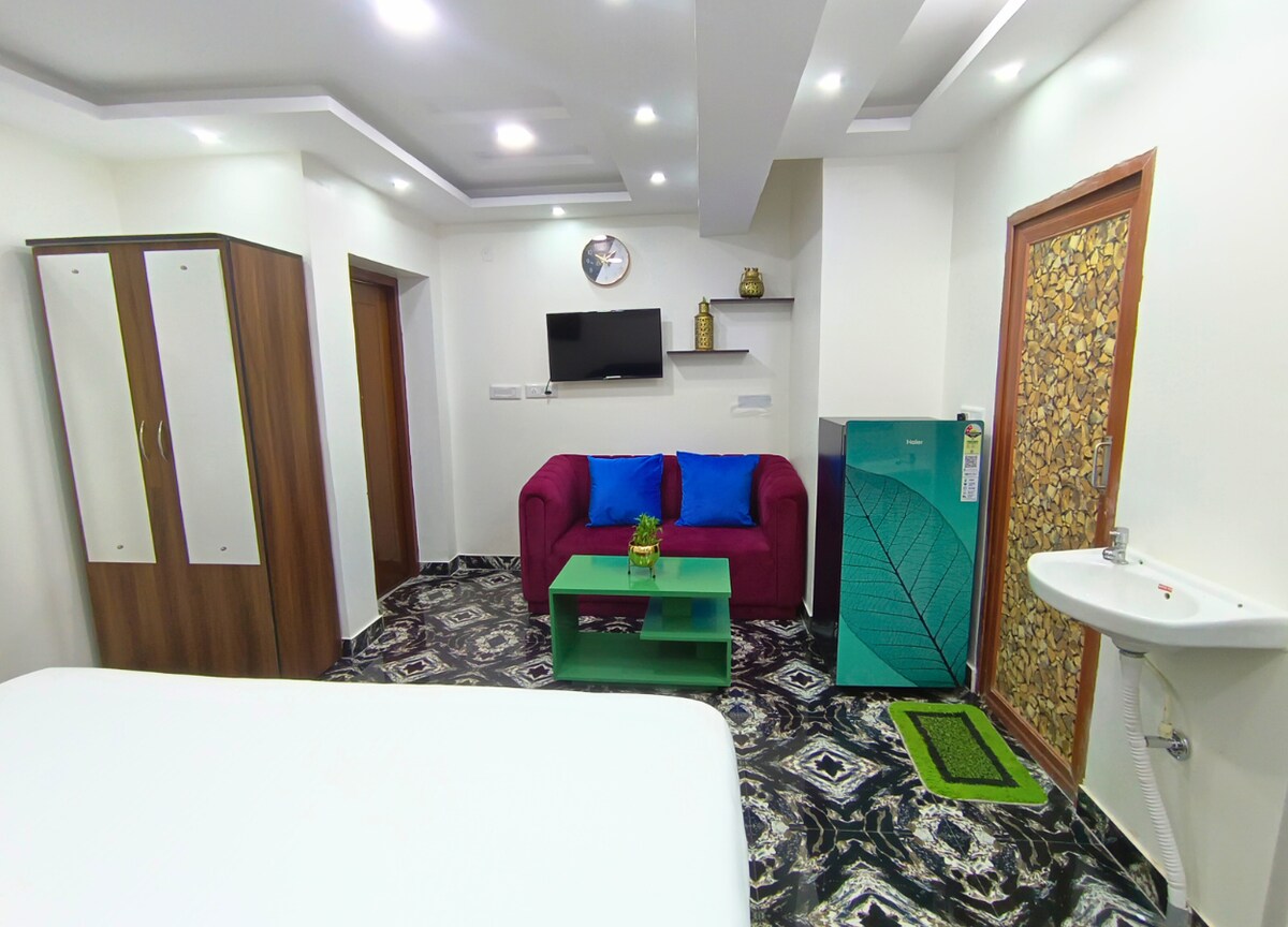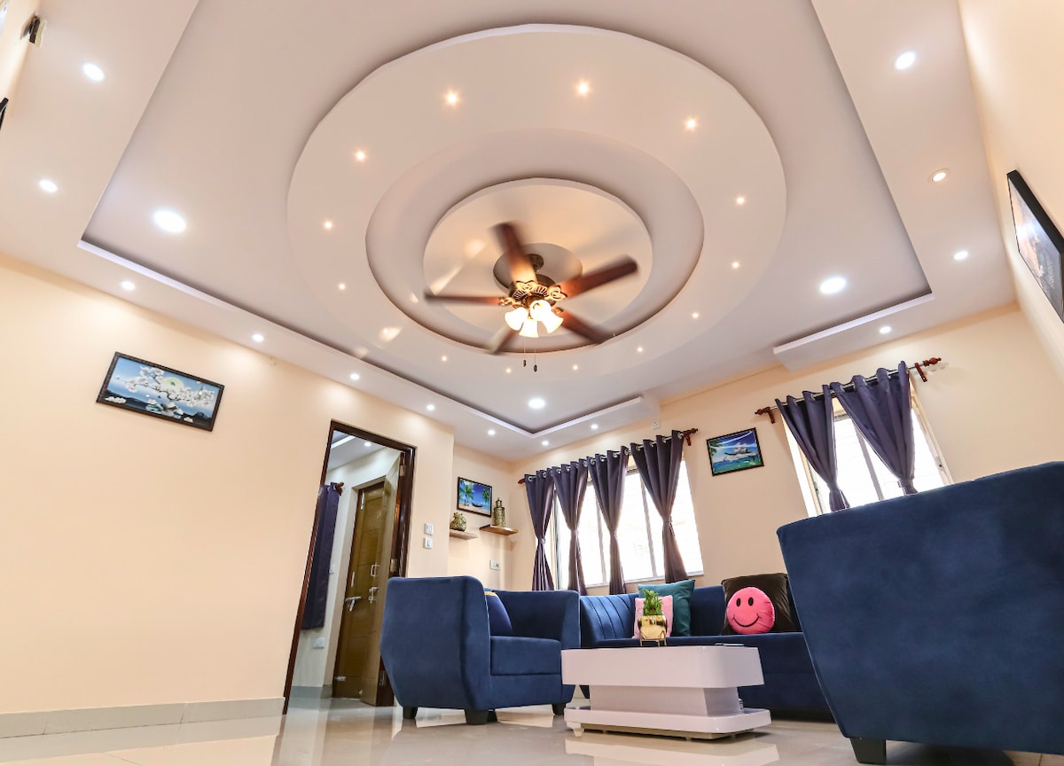 Notre maison se trouve dans le centre de Newtown, Kolkata. Aéroport international, bus, métro, cinéma, centres commerciaux, marchés, hôpitaux, collèges, bureaux informatiques, attractions touristiques, etc., tous sont à proximité. Nous vous offrons un hall spacieux avec un téléviseur intelligent. V., un coin repas, une cuisine bien équipée, 2 chambres climatisées avec salles de bains attenantes et balcons composés d'un lit king size, d'un lit queen size et d'un matelas supplémentaire pouvant accueillir jusqu'à 6 personnes avec un supplément de ₹800 par nuit pour le 6e voyageur.