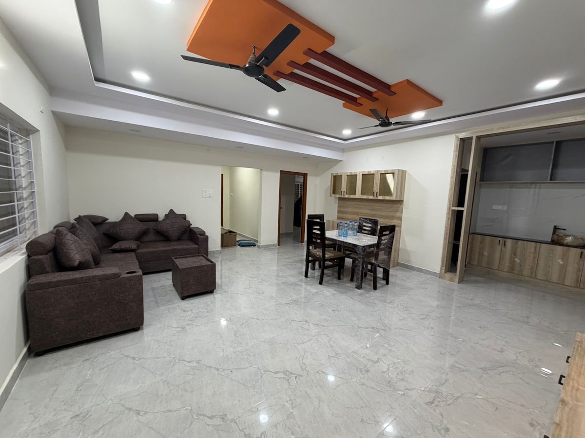 🏡 Appartement confortable 1BHK à Kondapur Parfait pour les séjours courts et longs Bienvenue dans votre maison loin de chez vous au cœur de Kondapur, Hyderabad ! Cet appartement 1BHK propre et entièrement meublé est idéal pour les voyageurs en solo, les couples, les petites familles ou les voyageurs d'affaires. 🛏️ CARACTERISTIQUES DE L'APP 1 chambre avec lit double confortable Salon avec canapé et télévision connectée Salle de bain attenante avec eau chaude 24h/24 et 7j/7 et geyser Cuisine entièrement équipée (réfrigérateur, cuisinière, ustensiles) Lave-linge et nettoyage de base Climatisation
