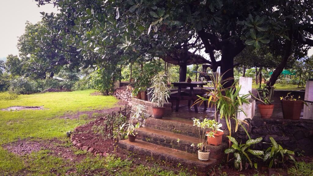 Konoha Eco Farmstay est un havre de paix où le temps semble se plier, mêlant le charme d'antan au confort d'aujourd 'hui Cette maison de boue est construite par nous en tenant compte du minimum pour la nature. Avec trois chambres à coucher, deux d'entre elles ayant des lofts en bois à grande hauteur. Une petite rivière qui fait des câlins à la ferme La plantation de mangues, de noix de cajou, de noix de Betel, de noix de coco à travers la ferme ajoute aux légumes verts vierges et épais absolus des chaînes Sahyadri environnantes.