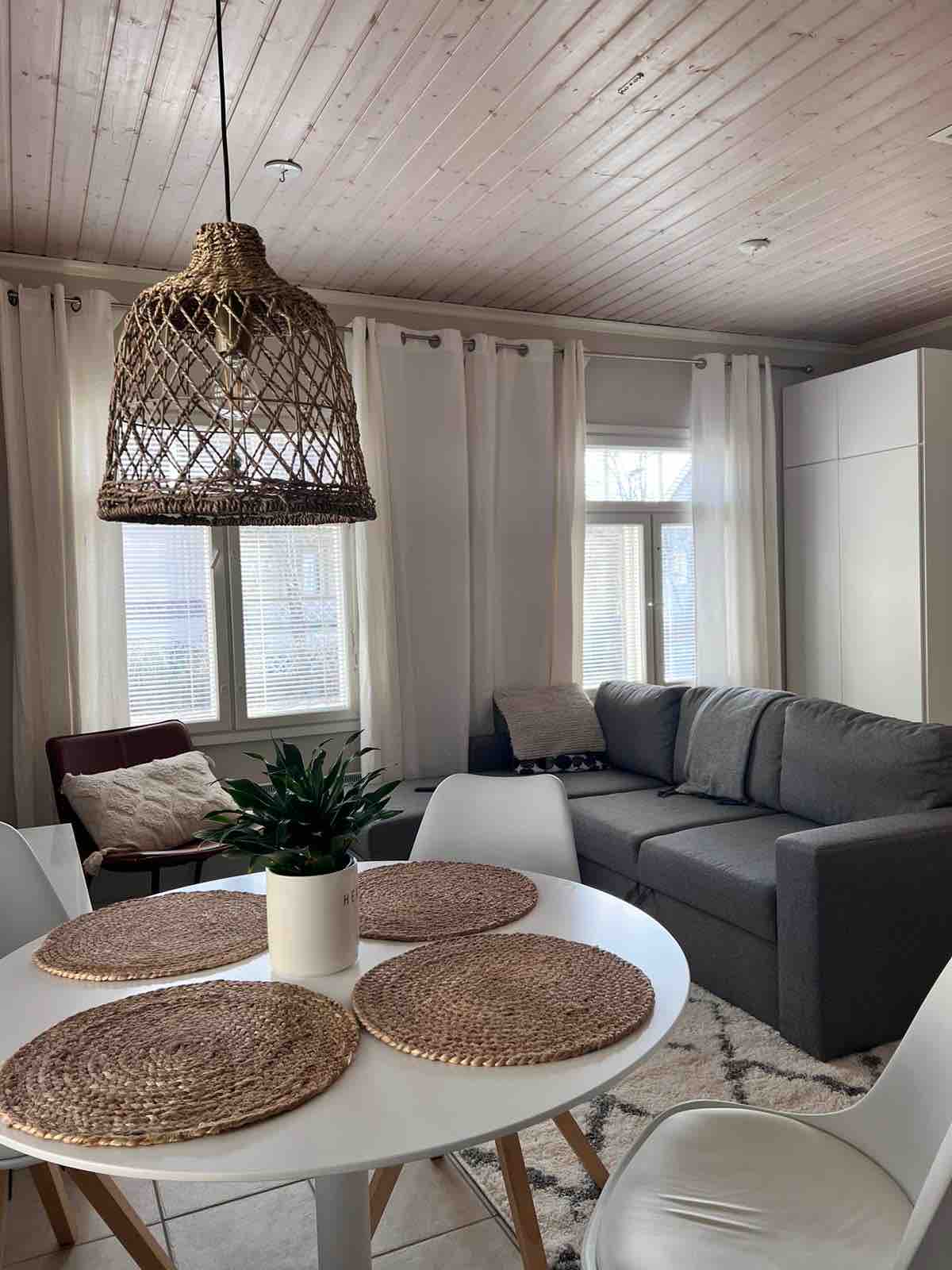 Un studio confortable de 35,5 mètres carrés situé dans le centre-ville de Joensuu. Le studio se trouve au deuxième étage d'un immeuble paisible. Il y a une place de parking et un ascenseur. Linge de lit, serviettes, savon et shampoing, sèche-cheveux, lave-linge séchant, ustensiles de cuisine, lave-vaisselle, réfrigérateur, micro-ondes, four et cuisinière, machine à café, bouilloire, grille-pain, une télévision connectée de 43 pouces et une connexion Wi-Fi sont inclus. Pour les tout-petits, il y a un lit parapluie et des jouets.