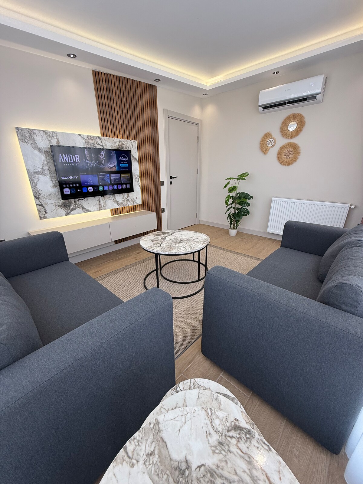 Proche du centre ville, à 5 minutes à pied de la plage et du marché local, des épiceries. Notre appartement 1+0 dispose d'une cuisine, d'une cuisinière, d'un lave-linge et de fournitures de cuisine de base. Il y a de l'eau chaude constante et un service de réception 24h/24. Il y a un système de chauffage au gaz naturel et des caméras de sécurité autour de l'immeuble. Calme, fiable et adapté pour 2 personnes, un espace de vie idéal pour les familles.