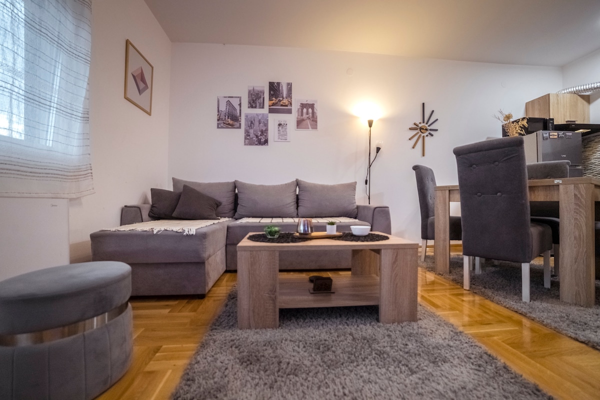 Appartement est situé dans le centre-ville, entouré de bars et de restaurants. La zone piétonne se trouve juste en face de la rue et le sentier pédestre riverain est à 5 minutes de là. Pour votre commodité, il y a un supermarché dans l'immeuble.