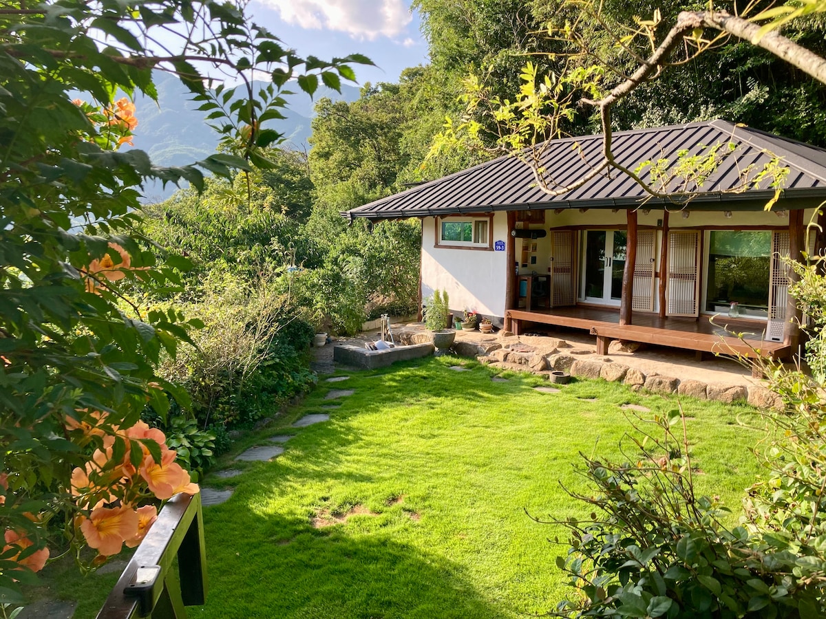 C'est un Hanok privé dans un village calme. Il est recommandé pour ceux qui veulent passer du temps avec leur famille ou leur couple, ou ceux qui ont besoin d'une pause ou de guérison dans un endroit confortable. Pendant la journée, vous pourrez profiter des montagnes et des champs, et la nuit, vous pourrez admirer les étoiles qui brillent dans le ciel. Le nombre de voyageurs pouvant être hébergés est de 2 personnes (2 adultes). Les réservations peuvent être effectuées pour 2 personnes maximum jusqu'en février et pour 4 personnes maximum à partir de mars. Les bébés peuvent séjourner avec vous sans frais supplémentaires. Si vous avez besoin de linge de lit supplémentaire, veuillez le marquer comme personne supplémentaire. La literie est toujours fraîche et lavée à la main. Nous préparons du coton biologique, de la laine de coton et des produits en coton pur. Vous pouvez cuisiner dans le logement. Cependant, veuillez vous abstenir de cuisiner des aliments avec de fortes odeurs à l'intérieur. Si vous nous le dites à l'avance, vous pouvez faire un barbecue à l'extérieur. (Il n'y a pas de frais supplémentaires, et le charbon de bois et le barbecue doivent être préparés par vous-même.) Nous préparons des grains de qualité supérieure et du thé de haute qualité. Vous pourrez déguster du café filtre et des rafraîchissements dans le jardin que ma mère cultive.