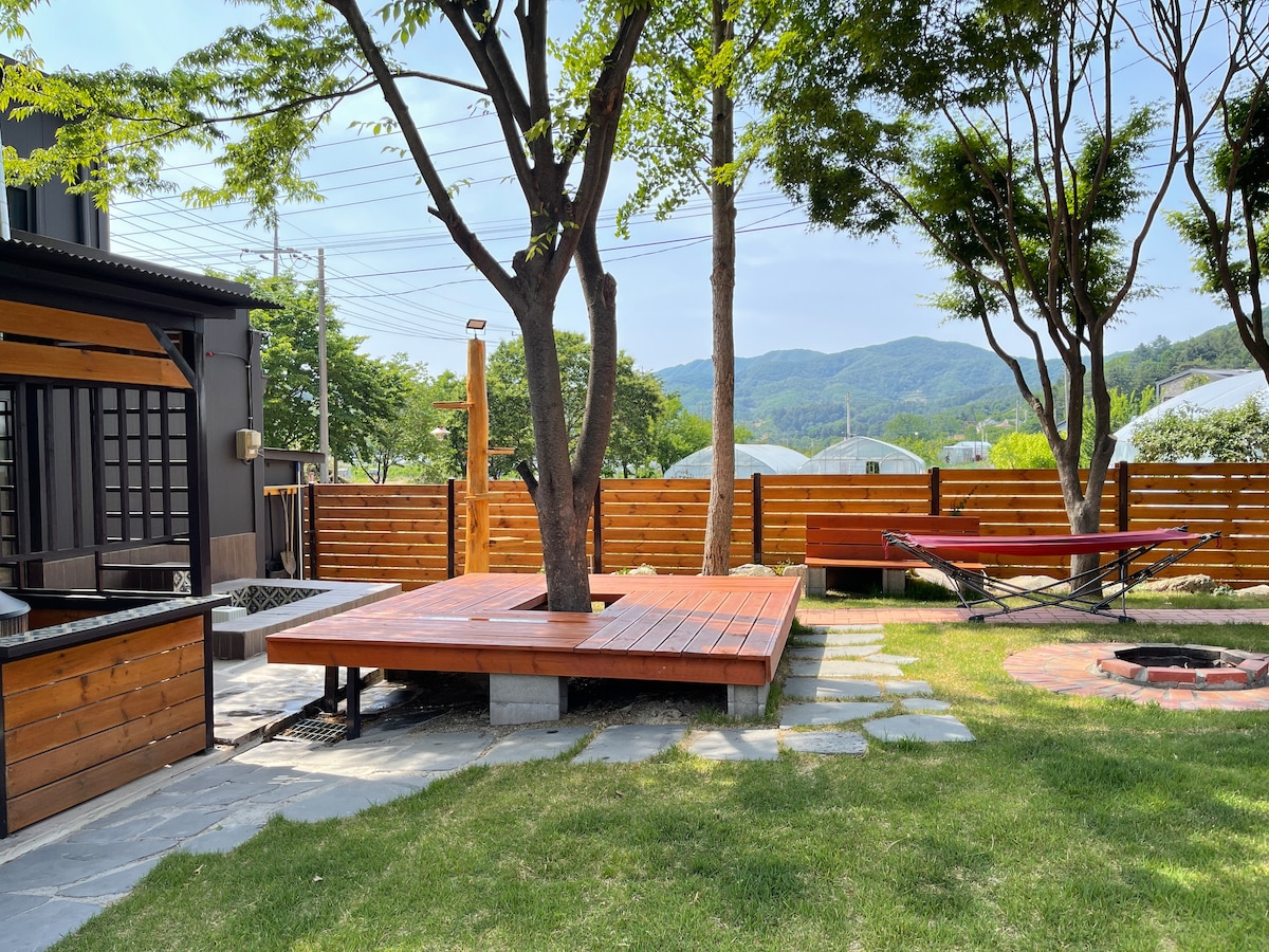 Nous vous invitons dans une maison de marronnier avec un jardin secret qui était caché, des paysages éblouissants et des arbres marronniers géants. Marronnier House est un espace privé avec un jardin mystérieux surplombant les montagnes et les étoiles et une atmosphère rurale isolée. Échappez-vous de la ville et profitez d'une pause détente et fraîche avec un camchnic et un foyer à la périphérie de Séoul. Depuis février 2025, nous cesserons de voyager avec des chiens en raison de problèmes de gestion et de sécurité. Merci de votre soutien et nous vous récompenserons avec un meilleur hébergement.