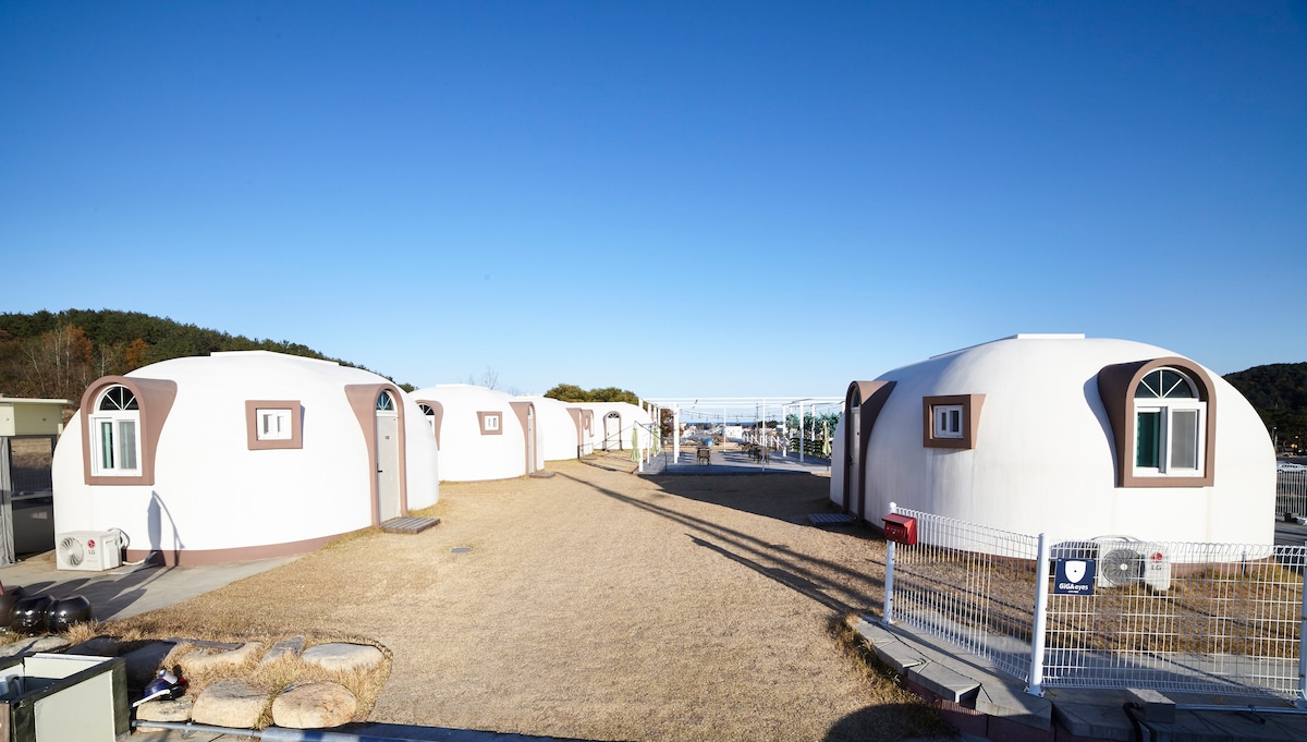 Dans la nature de Jeju, une maison ouverte sur le ciel vous attend. Une maison dôme privée. Cet espace est entièrement pour vous. Projetez votre film préféré avec un projecteur, Parler à ses proches devant un feu de charbon de bois chaud, Profitez d'une matinée tranquille avec un petit déjeuner au porridge. AU coin DE LA rue 5 minutes en voiture de la plage de Haebich, Il faut 20 à 30 minutes en voiture pour se rendre à Udo Wharf, au sommet de Seongsan Ilchulbong et à Seopjikoji. Les terrains de golf haut de gamme de Jeju tels que Shineville, Haevichi et Cypress sont également à proximité. C'est également un endroit idéal pour ceux qui planifient un voyage de golf. Lorsque vous entrerez dans la chambre, nous vous guiderons par SMS vers l'emplacement des installations pratiques telles que les restaurants, les épiceries et les laveries automatiques à proximité. Vous pouvez en ajouter plus si vous le souhaitez. Projecteur à faisceau libre Barbecue 20 000 KRW pour 2 personnes Repas de porridge chaud 20 000 KRW pour 2 personnes (Si vous nous le dites à l'avance lors de la réservation, nous le préparerons) C'est un endroit pour ceux qui recherchent un véritable repos loin du bruit de la vie quotidienne. Découvrez Jeju à votre rythme