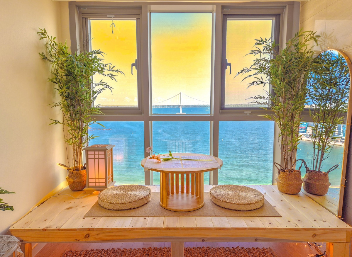 ✨ Ajoutez une touche d'émotion à Gwangalli – Bienvenue au GwangAn ♥ Séjournez dans une retraite confortable et élégante située juste en face de la plage de Gwangalli. Réveillez-vous avec vue sur l'océan et imprégnez-vous de l'ambiance unique du quartier côtier de Busan. Logement Airbnb avec permis en Corée Un 📍 emplacement privilégié • À quelques pas de la plage de Gwangalli • Entouré de cafés branchés et de restaurants locaux • À 5 minutes à pied de Millak The Market ; • À 10 minutes à pied du parc Minrak Waterside