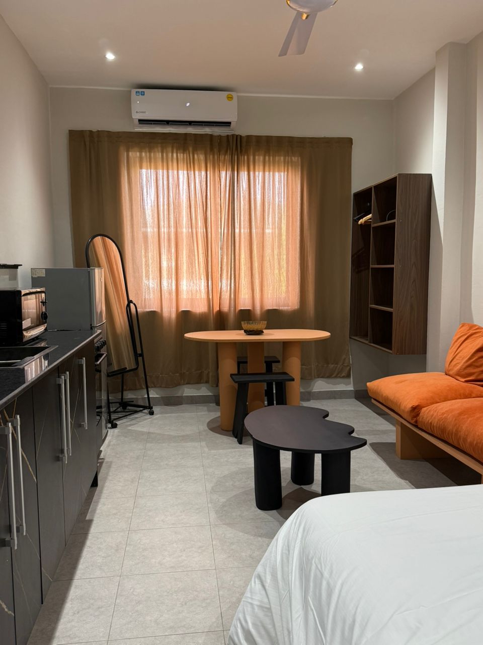 Logement : Un studio chaleureux et non-fumeur, joliment meublé avec une salle de bain propre. Il est équipé d'une connexion Wi-Fi haut débit gratuite, de la climatisation, d'une télévision connectée de 55 pouces et d'une cuisine entièrement équipée avec un lave-linge. Le logement dispose d'un balcon avec mobilier d'extérieur pour votre détente. L'emplacement : Studio confortable en face du centre commercial d'Accra. À seulement 10 minutes en voiture de l'aéroport international. La propriété est très pratique pour les commerces, les restaurants, les clubs, les pubs/salons, la plage de Labadi et les endroits intéressants.