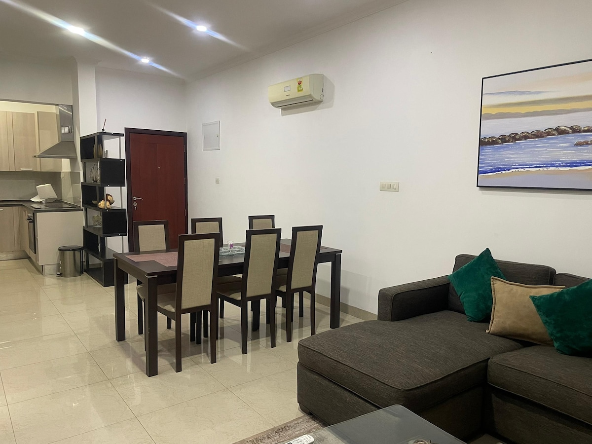 Profitez d'un séjour somptueux dans notre appartement ultra-confortable et impeccablement propre, parfait pour les voyageurs en solo et les couples. Doté de draps moelleux, de la télévision numérique par satellite complète, de Netflix et d'un éclairage intelligent à commande vocale, notre espace offre une détente et une commodité inégalées. Situé à seulement 15 minutes de l'aéroport international de Kotoka et à quelques pas des meilleurs restaurants d'Accra, c'est le point de départ idéal pour explorer la ville.
