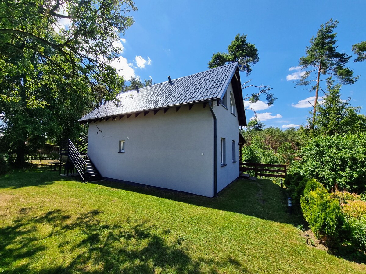 Un chalet de style cabane dans un jardin clôturé, grand et bordé d'arbres. Près de 1 000 m2 de verdure le rendent entièrement privé. Le quartier est calme. Trois beaux grands lacs à moins de 500-700 m Les voyageurs peuvent compter sur une véritable pause dans l'agitation, le feu dans la cheminée, écouter le son des arbres, se vanter des grenouilles et chanter des oiseaux. Ici, vous reprendrez votre souffle dans un endroit sûr en pleine nature, au cœur de la Poméranie cachoube.