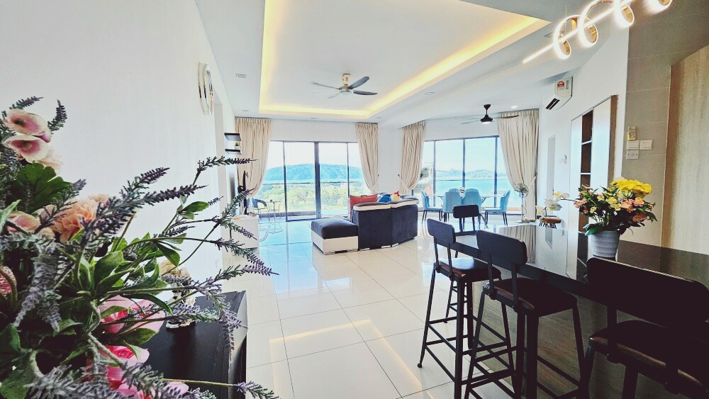 Notre appartement de 3 chambres avec vue sur la mer est situé au cœur de la ville de KK (au-dessus du centre commercial Imago), avec une vue magnifique sur la mer et le coucher du soleil depuis la maison. Notre maison est un appartement haut de gamme à l'étage supérieur d'Imago, situé en plein centre ville, avec une vue imprenable sur la mer et la ville, le design est élégant et simple, en gros tout ce dont vous avez besoin est entièrement équipé avec une cuisine ouverte bien équipée qui vous permet d'acheter des fruits de mer pour cuisiner et manger à la maison. La piscine à débordement vous permet de vous détendre et de profiter de la mer de Chine méridionale.