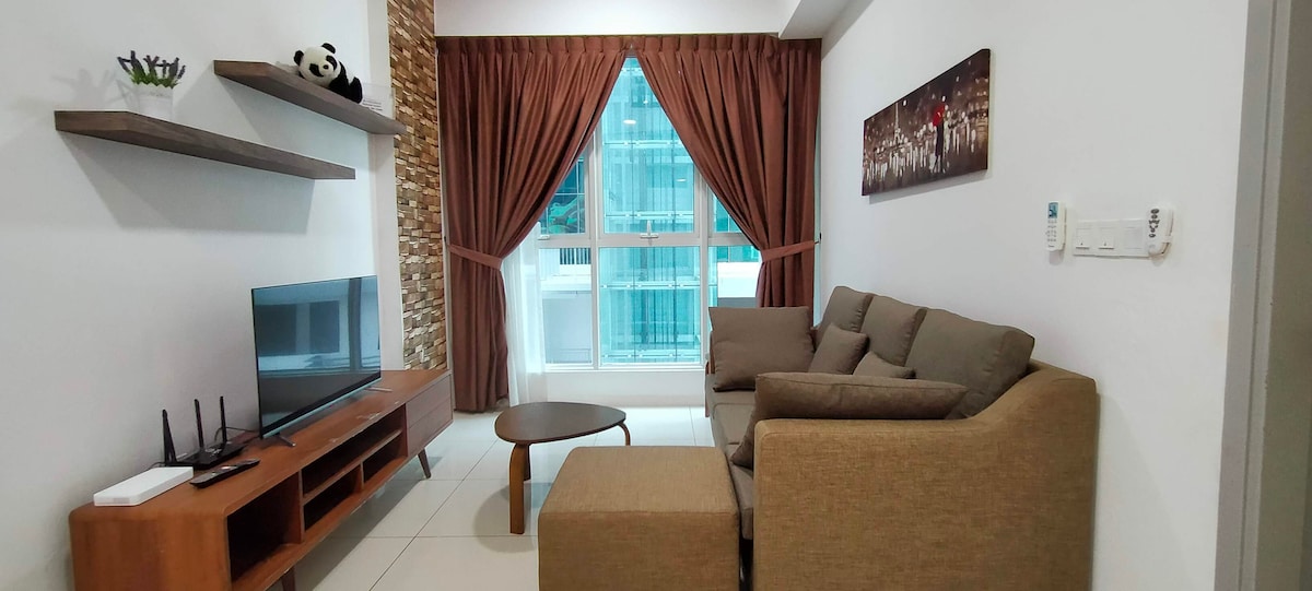 Tout est neuf, même le bâtiment lui-même, le mobilier, les équipements et le logement sont totalement propres. Situé autour de la ville, cet endroit est parfait pour un couple en lune de miel, ou un couple avec un enfant. Maison super confortable avec toutes les commodités dont vous avez besoin, la cuisine est entièrement équipée avec four à micro-ondes et cuisinière à induction, etc. Lave-linge et sèche-linge sont disponibles. Fondamentalement, tout ce dont vous avez besoin est ici. Wifi haute vitesse ! RM40 pour lit supplémentaire 5 min à pied du centre commercial Imago 7- 10 min en voiture de l'aéroport KK