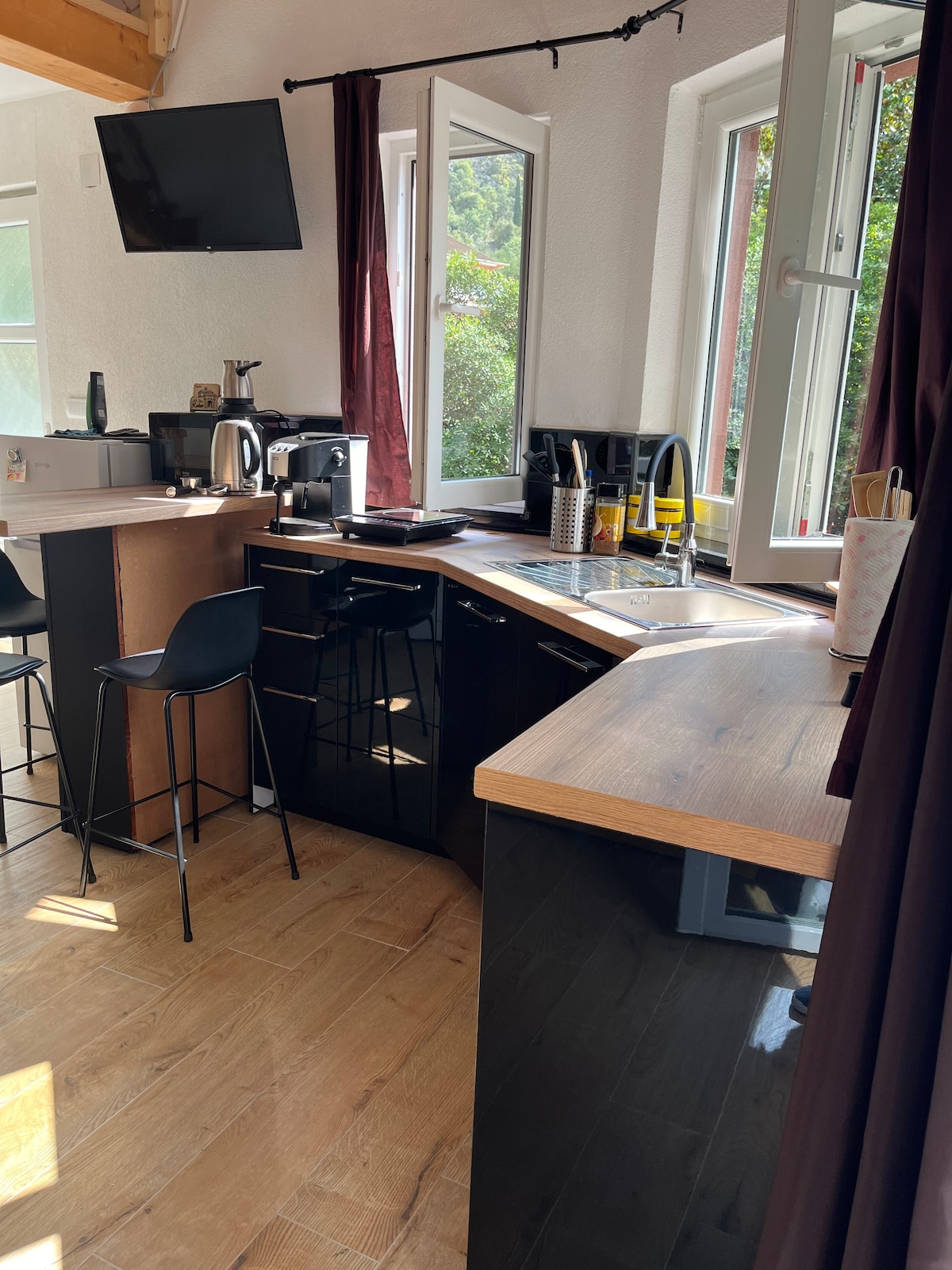 Bienvenue dans notre tout nouveau loft au cœur de Tivat, à seulement 500 m de Porto Montenegro et à deux pas de la plage. Entouré de cafés, restaurants, boulangeries et boutiques locaux, vous aurez tout ce dont vous avez besoin à quelques pas. Profitez de votre café du matin avec une vue imprenable sur les montagnes et la charmante vieille marina dans le confort de votre chambre. L'appartement est lumineux, confortable et entièrement équipé – idéal pour les couples, les voyageurs en solo ou les travailleurs à distance à la recherche de confort et de commodité.