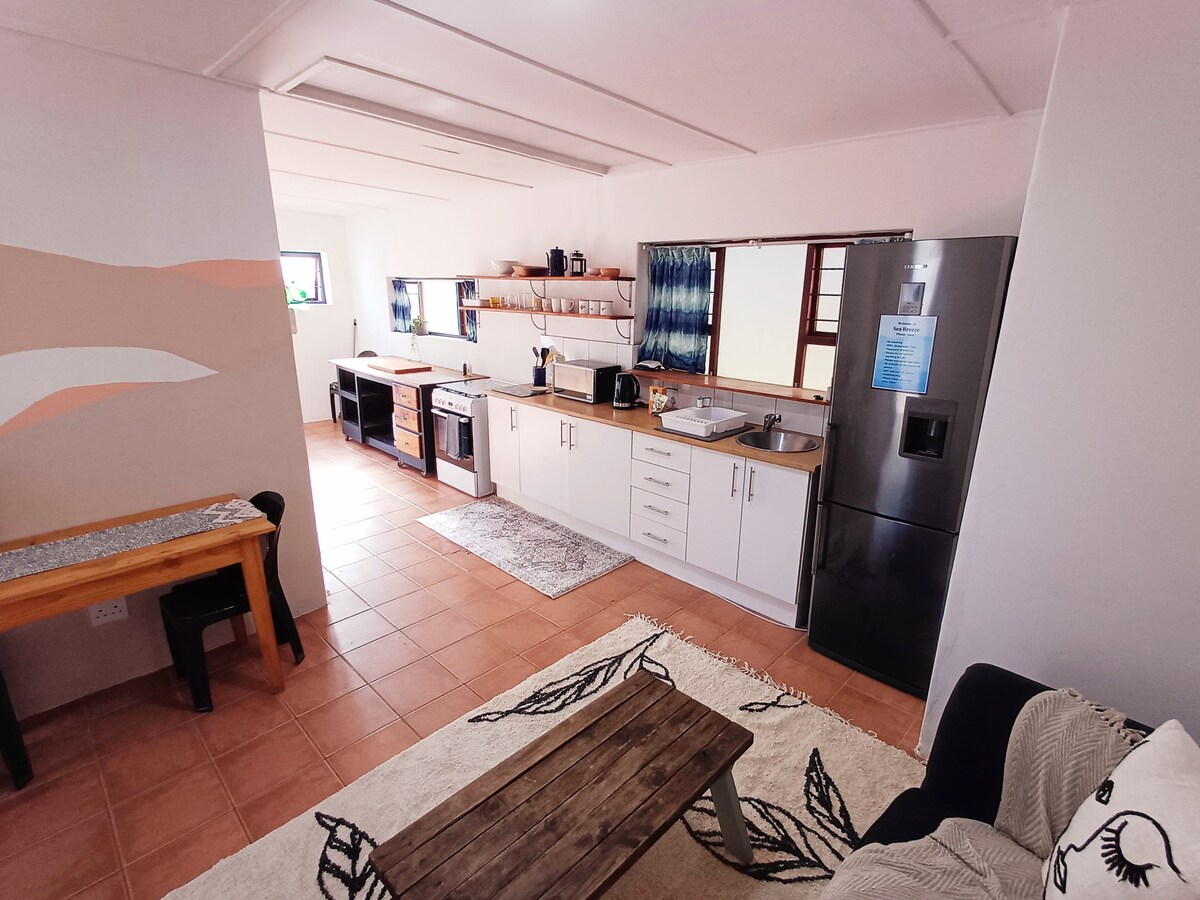 Détendez-vous dans une maison spacieuse avec vue sur l'océan, à quelques minutes seulement des célèbres Supertubes de Jeffreys Bay. Cet espace lumineux et aéré de deux chambres dispose d'un grand coin repas avec puits de lumière, de plusieurs options de couchage, d'une connexion Wi-Fi rapide et gratuite et d'un espace de jeux intérieur avec un billard, un jeu de fléchettes et une PS4. Parfait pour les surfeurs, les familles ou les amis à la recherche d'espace, de confort et de divertissement, à seulement 1 km de la plage et des commerces locaux.