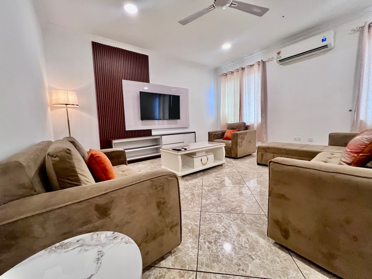 Ce logement familial est proche de tous les sites et commodités, niché au cœur d'un complexe résidentiel sécurisé. Profitez d'un bonheur ininterrompu avec notre système de secours à énergie solaire tout au long de votre séjour, ainsi que d'une piscine et d'un accès à la plage payés par la communauté. Ayez l'esprit tranquille grâce aux dispositifs de sécurité avancés tels que les détecteurs de fumée et de monoxyde de carbone et l'extincteur. Proche de l'aéroport et du centre commercial Accra Mall. L'oasis ultime pour votre escapade ghanéenne. Transfert aéroport disponible sur demande moyennant des frais modiques.