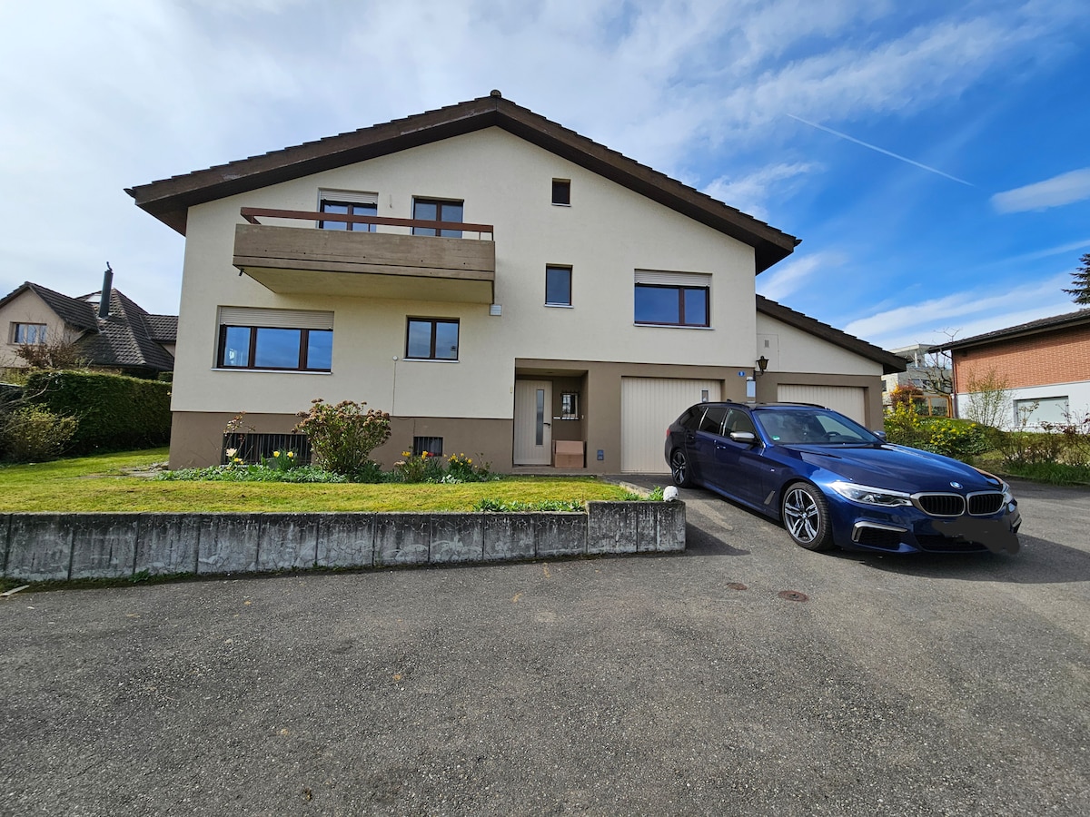 Ce studio moderne est situé à proximité du lac (3 min) et offre un design propre et naturel. La cuisine entièrement équipée, la salle de bains séparée avec douche à l'italienne et le salon/salle à manger confortable ainsi que le lit double confortable vous invitent à vous détendre et à vous amuser. Ermatingen est un village de pêcheurs pittoresque avec de belles promenades, quelques restaurants et la piste cyclable juste devant la maison. Nous offrons un parking sécurisé dans notre garage pour 1 voiture.