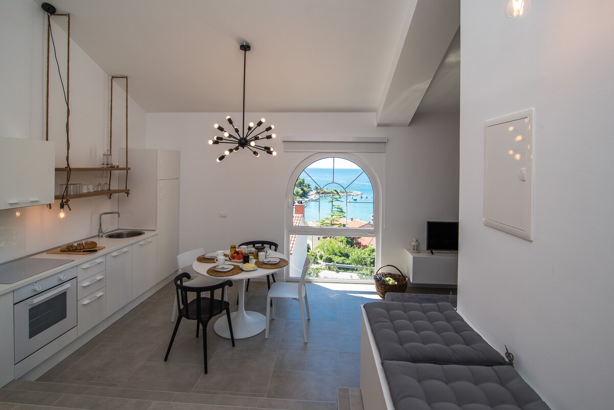 Apartment Bonaca 2 is located on the 1st floor of a family house and was completely renovated a few years ago. There is a living room / dining area / kitchen with fantastic sea views , double bedroom, bathroom and balcony. Guests can use air conditioning, cable TV and WiFi net at no extra charge. Parking is located 100 m far from the house. The town center is only a few minutes walk away, and the beaches are available 5-10 minutes walk.