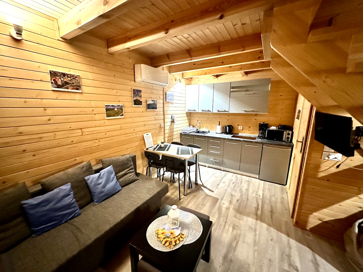 De rêve pour un couple. Salon spacieux avec vue sur la forêt et le patio. Des meubles en bois naturel, des murs et un ancien sol en briques. Sur la mezzanine, il y a deux lits doubles et simples. Canapé-lit pour deux en bas. Modernité combinée à un style rustique. À côté de l'écurie - équitation et restaurant Biały Borek. Une base idéale pour des excursions à vélo et de randonnée dans la réserve naturelle de Sokole Góra avec des grottes et des ruines de château partiellement reconstruites à proximité d'Olsztyn.