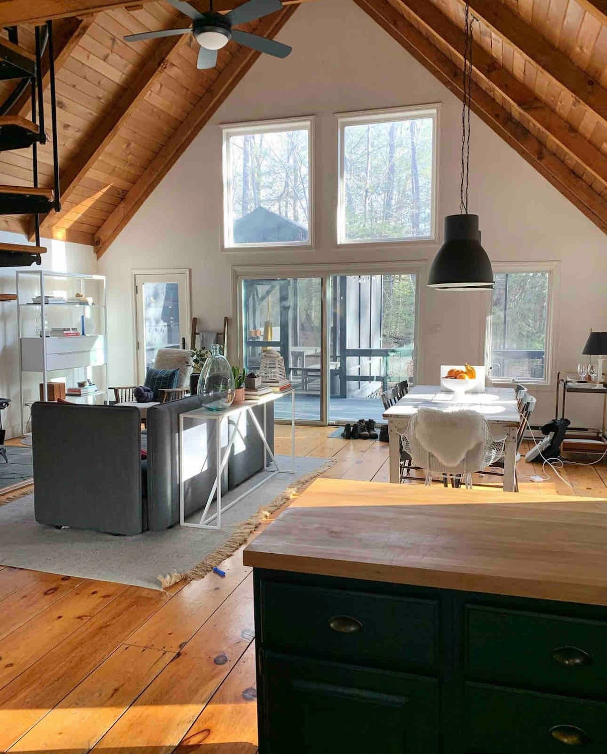 Réveillez-vous avec vue sur la forêt dans un chalet moderne en forme de A avec 2 chambres, dont un loft confortable. Partez en randonnée sur les sentiers à proximité, détendez-vous dans le jacuzzi en cèdre ou visitez les brasseries locales. En été, faites un barbecue ou rassemblez-vous autour du feu ; en hiver, réchauffez-vous près du poêle à bois sur la propriété de 2 acres dans les Catskills. Remarque : les voyageurs doivent être âgés de 13 ans ou plus et tous les adolescents doivent figurer sur la réservation. Les animaux de compagnie sont les bienvenus avec une approbation préalable, l'acceptation du règlement pour les animaux de compagnie et le paiement des frais pour les animaux de compagnie. Veuillez contacter l'hôte avant de réserver.