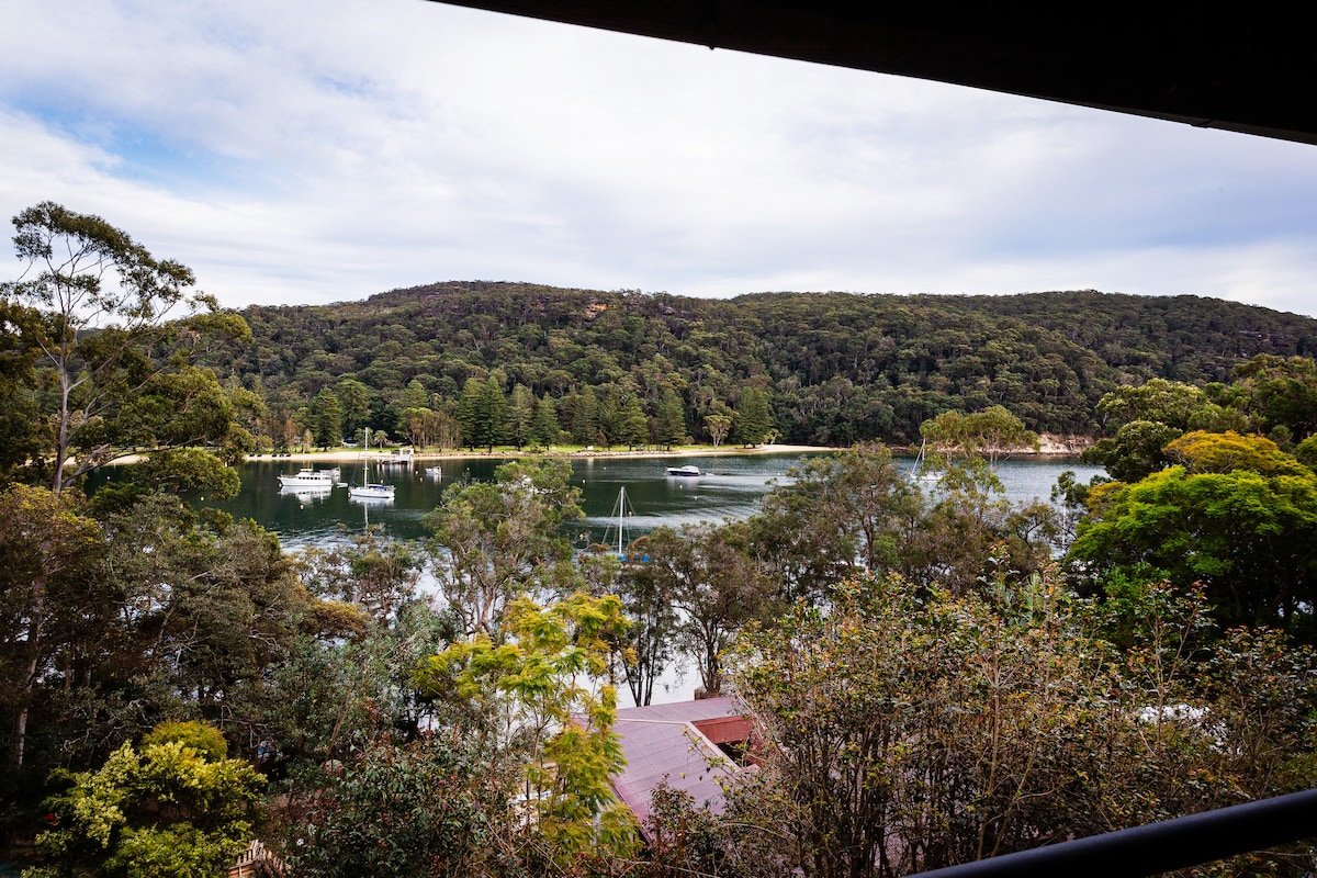 Ahoy ! Montez à bord de votre bateau au bord de l'eau « Tides Reach » - niché de manière unique sur le rivage avec une vaste terrasse pour dîner en plein air, une jetée en eau profonde et un accès à la cour arrière des sentiers pédestres du parc national Ku-ring-gai Chase. Plongez sur votre jetée privée, faites la queue depuis la terrasse ou détendez-vous au coin du feu avec un café fraîchement moulu. Il s'agit d'un chalet avec accès à l'eau dans McCarrs Creek de Pittwater avec parking à Church Point, puis prenez un court bateau-taxi à la demande. @Tidesreach.